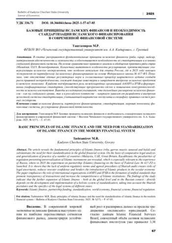 В статье раскрываются фундаментальные принципы исламских финансов (риба, гарар, майсир, материальная обеспеченность и халяльность) и обосновывается необходимость их стандартизации в условиях глобальной финансовой системы. На основе сравнительно-правового анализа и обобщения практики ряда стран (Малайзия, ОАЭ, Великобритания, Казахстан) выявляются особенности регулирования, препятствующие универсализации исламских инструментов, что особенно актуально для опыты России, где в 2023 году запущен эксперимент по партнёрскому (исламскому) финансированию на основе Федерального закона № 417-ФЗ. Показано, что отсутствие единых регуляторных норм и согласованных процедур шариатского аудита создаёт риски правовой неопределённости, снижает доверие инвесторов и затрудняет внедрение исламских продуктов в светскую экономику. В работе подчёркивается роль международных организаций AAOIFI и IFSB в формировании унифицированных стандартов, способствующих прозрачности сделок и повышению конкурентоспособности исламских институтов. Выводы исследования указывают, что дальнейшее расширение исламских финансов - как на глобальном уровне, так и в российском контексте - напрямую зависит от разработки и внедрения целостной системы стандартизации, учитывающей шариатские постулаты и специфику правовых систем разных государств.