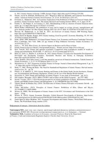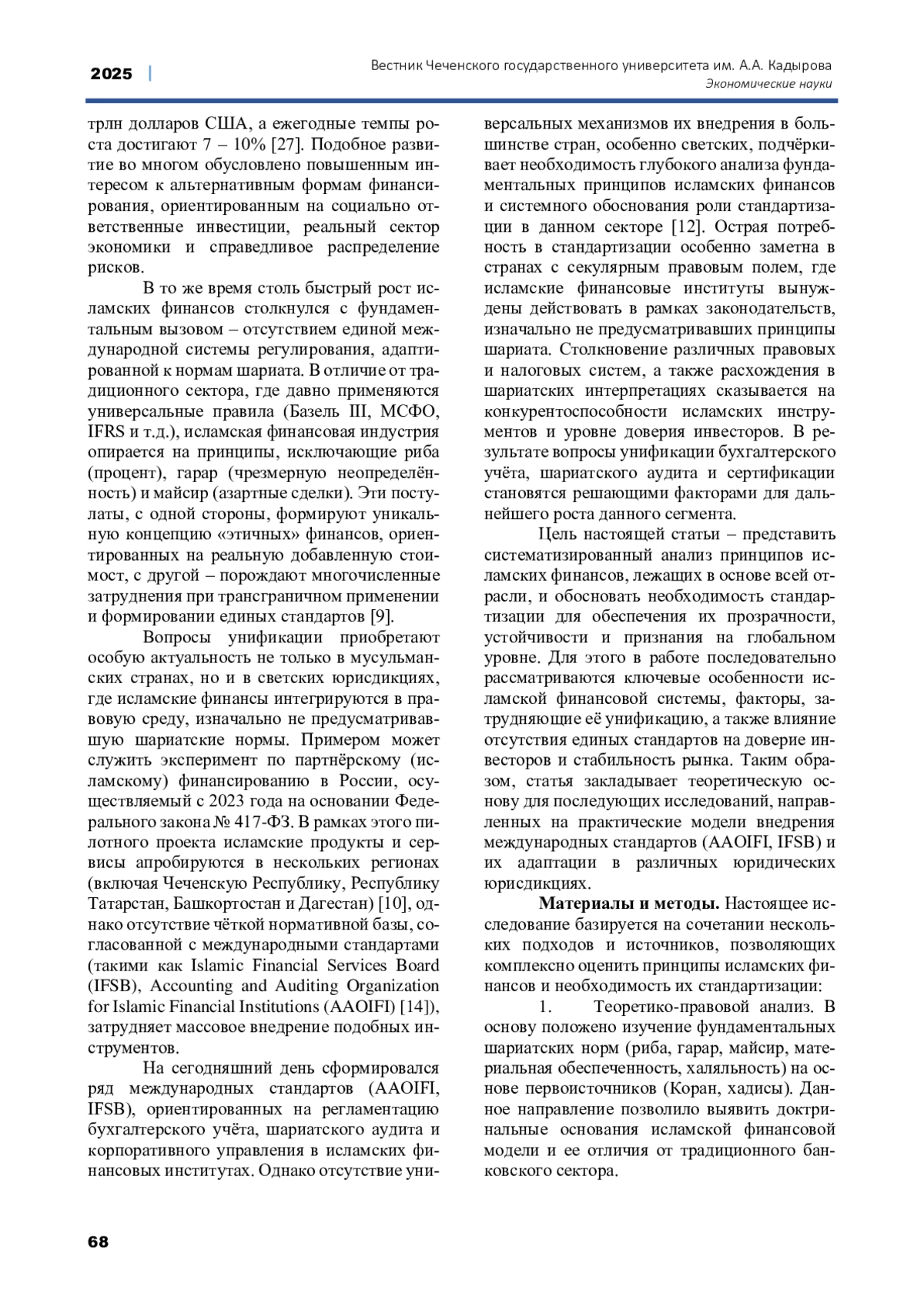 12. Шовхалов, Ш.А. Методика анализа продуктов исламского банка / Ш.А. Шовхалов // Вестник Чеченского государственного университета им. А.А. Кадырова. 2024. № 4(56). - С. 16-22. DOI: 10.36684/chesu-2024-4-56-16-22 EDN: AZNLMP