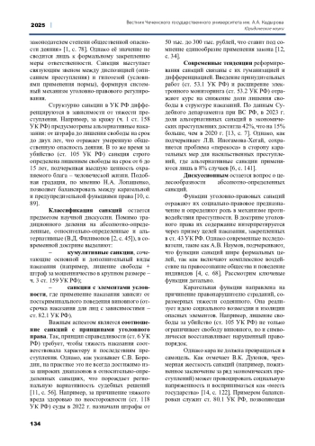 ]. Современные тенденции реформирования санкций связаны с их гуманизацией и дифференциацией. Введение принудительных работ (ст. 53.1 УК РФ) и расширение электронного мониторинга (ст. 53.2 УК РФ) отражают курс на снижение доли лишения свободы в структуре наказаний. По данным Судебного департамента при ВС РФ, в 2023 г. доля альтернативных санкций в экономических преступлениях достигла 42%, что на 15% больше, чем в 2020 г. [13, с. 7]. Однако, как подчеркивает Л. В. Иногамова-Хегай, сохраняется проблема «перекоса» в сторону карательных мер для насильственных преступлений, где альтернативные санкции применяются лишь в 8% случаев [6, с. 141].