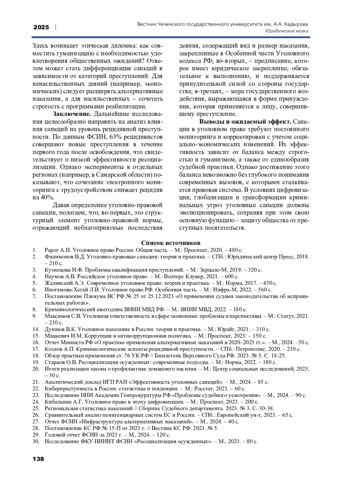 13. Козлов А.П. Криминологические аспекты рецидивной преступности. - СПб.: Петрополис, 2020. - 210 с.