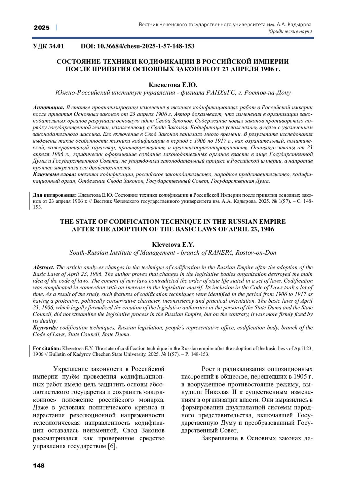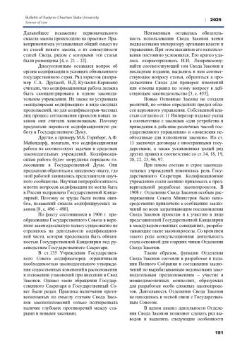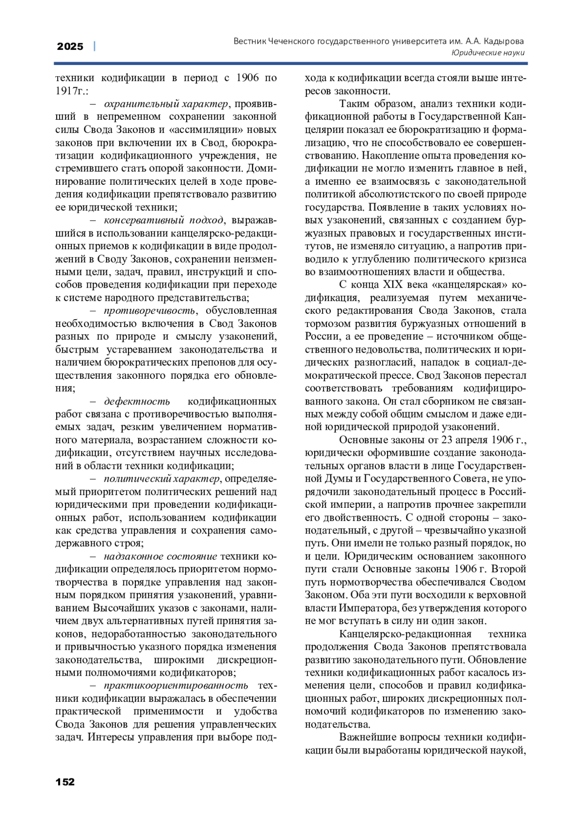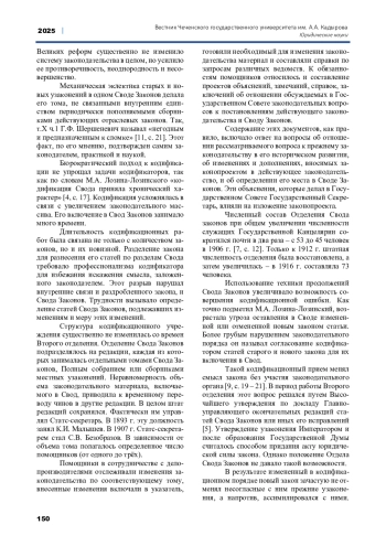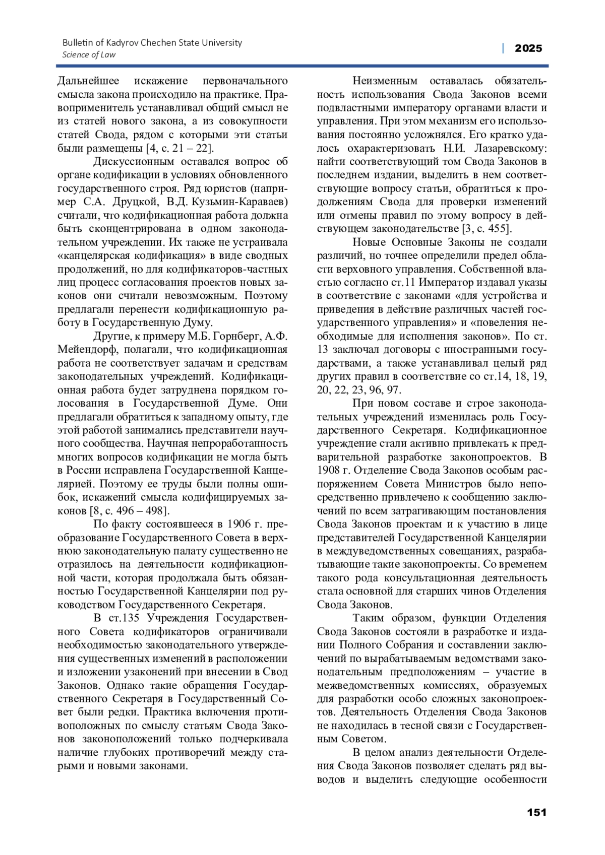 9. Шатковская Т.В. Соотношение кодификации и законотворчества в деятельности кодификационных органов Российской империи в XIX - нач. XXв. // Журнал российского права. 2025. Т.29. №2. - С.17-29. EDN: XZFAEV