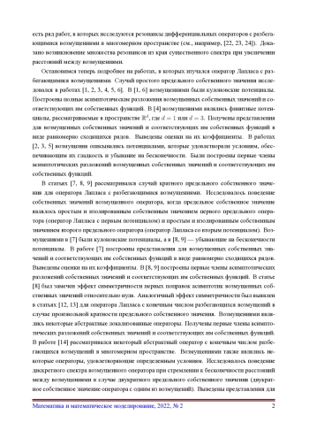 13. Borisov D.I. Distant perturbations of the Laplacian in a multi-dimensional space // Annales Henri Poincaré. 2007. Vol. 8. No. 7. Pp. 1371-1399. DOI: 10.1007/s00023-007-0338-4 EDN: LKJYGJ