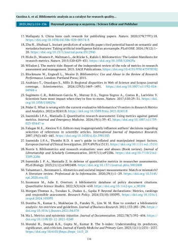 24. Пыдер Э. Что не так с современной оценочной библиометрией? Frontiers in Research Metrics and Analytics. 2022;6:824518. DOI: 10.3389/frma.2021.824518