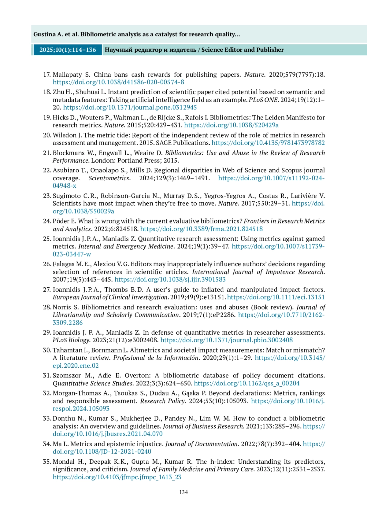 17. Маллапати С. Китай запрещает денежное вознаграждение за публикацию научных статей. Nature. 2020;579(7797):18.