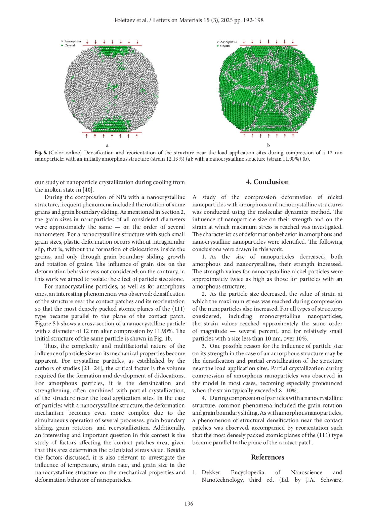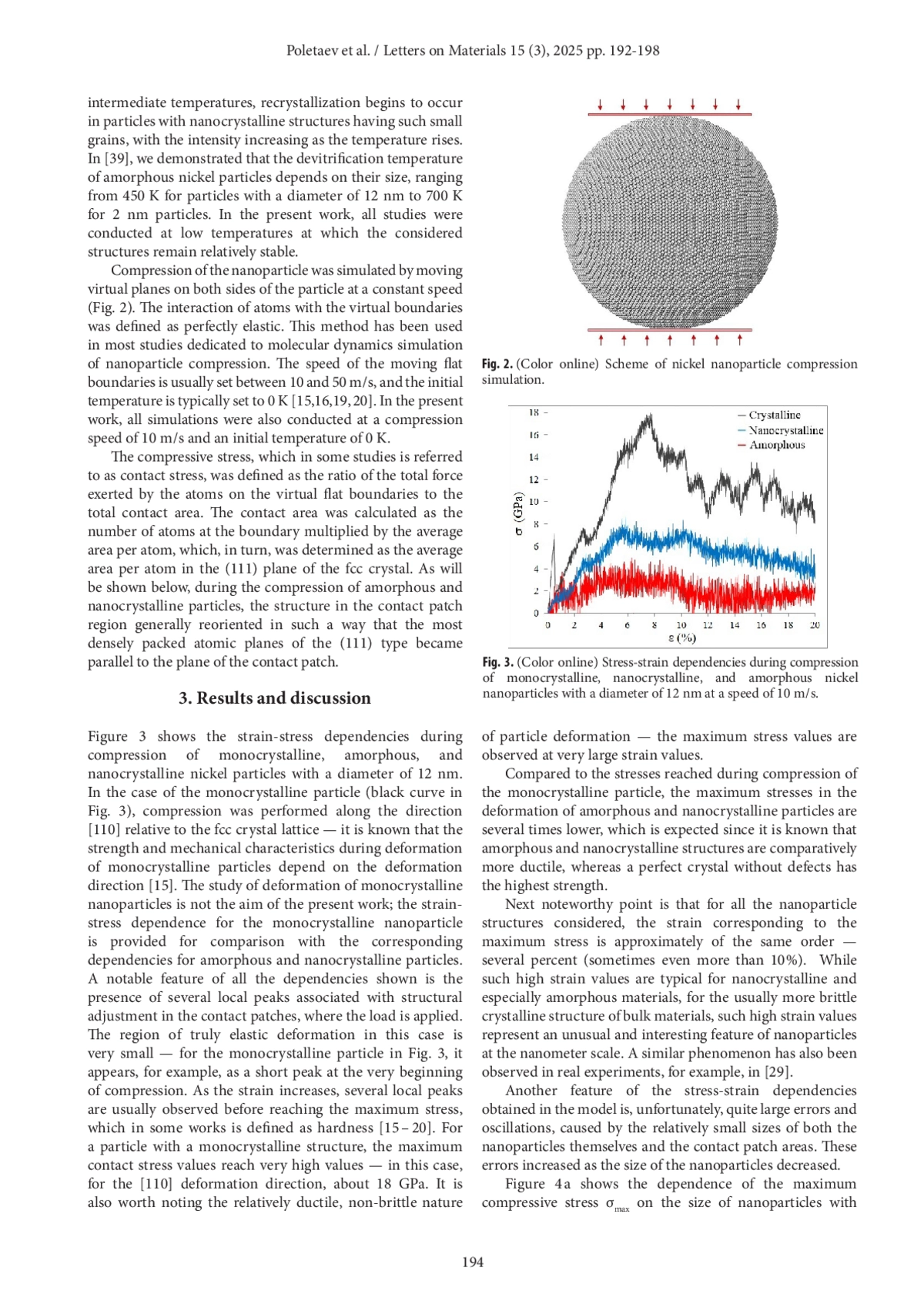 ПОЛЕТАЕВ Г. М., РАКИТИН Р. Ю. SIMULATION OF THE COMPRESSION OF NANOCRYSTALLINE AND AMORPHOUS NICKEL NANOPARTICLES // ПИСЬМА О МАТЕРИАЛАХ. 2025. № 3 (59), ТОМ 15