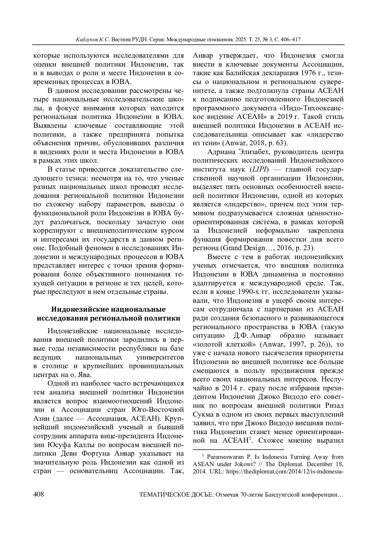 15. Anwar D. F. ASEAN and Indonesia: Some Reflections // Asian Journal of Political Science. 1997. Vol. 5, iss. 1. P. 20-34. DOI: 10.1080/02185379708434092