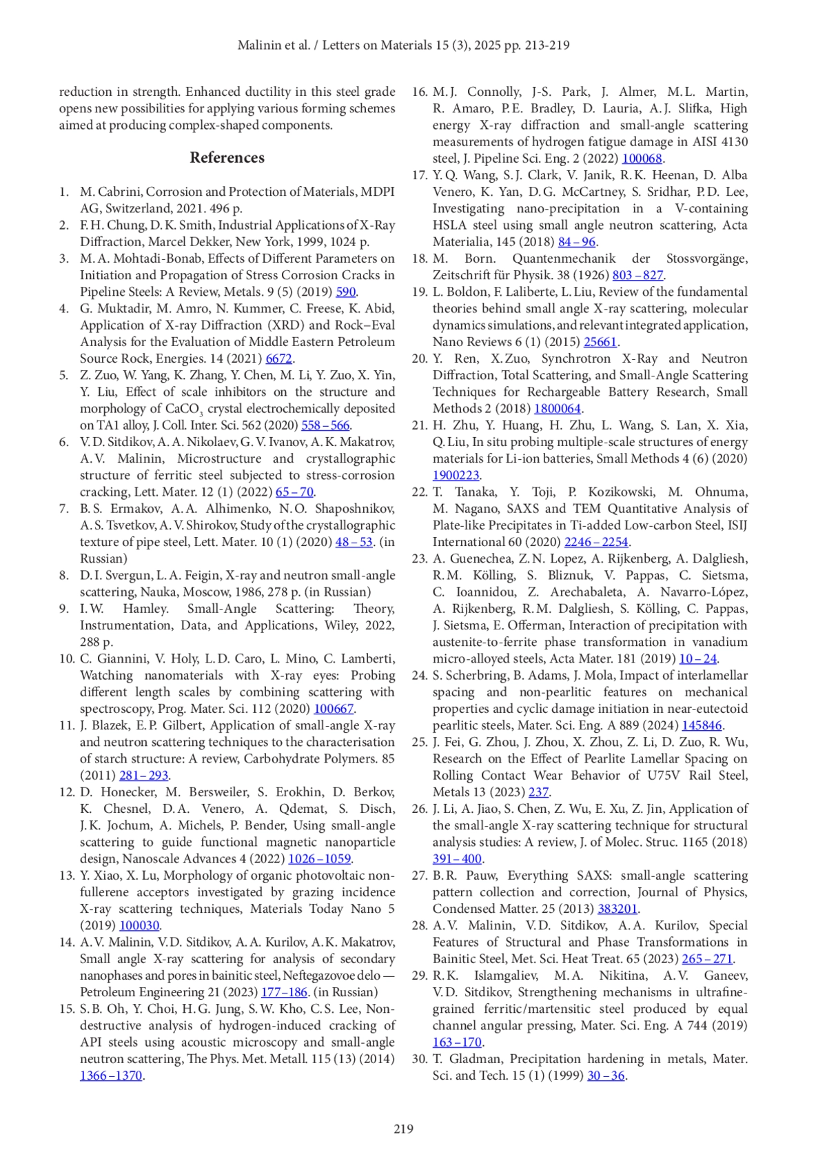 МАЛИНИН А. В., СИТДИКОВ В. Д. MODIFIED SMALL-ANGLE X-RAY SCATTERING TECHNIQUE FOR THE ANALYSIS OF DIFFERENT TYPES OF HARDENING PRECIPITATES IN STEEL // ПИСЬМА О МАТЕРИАЛАХ. 2025. № 3 (59), ТОМ 15