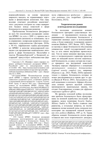 3. Бокерия С. А. Концепт “безопасность - развитие” в деятельности БРИКС // Вестник Томского университета. 2020. № 454. С. 123-130. ;. DOI: 10.17223/15617793/454/14 EDN: NUIGLL