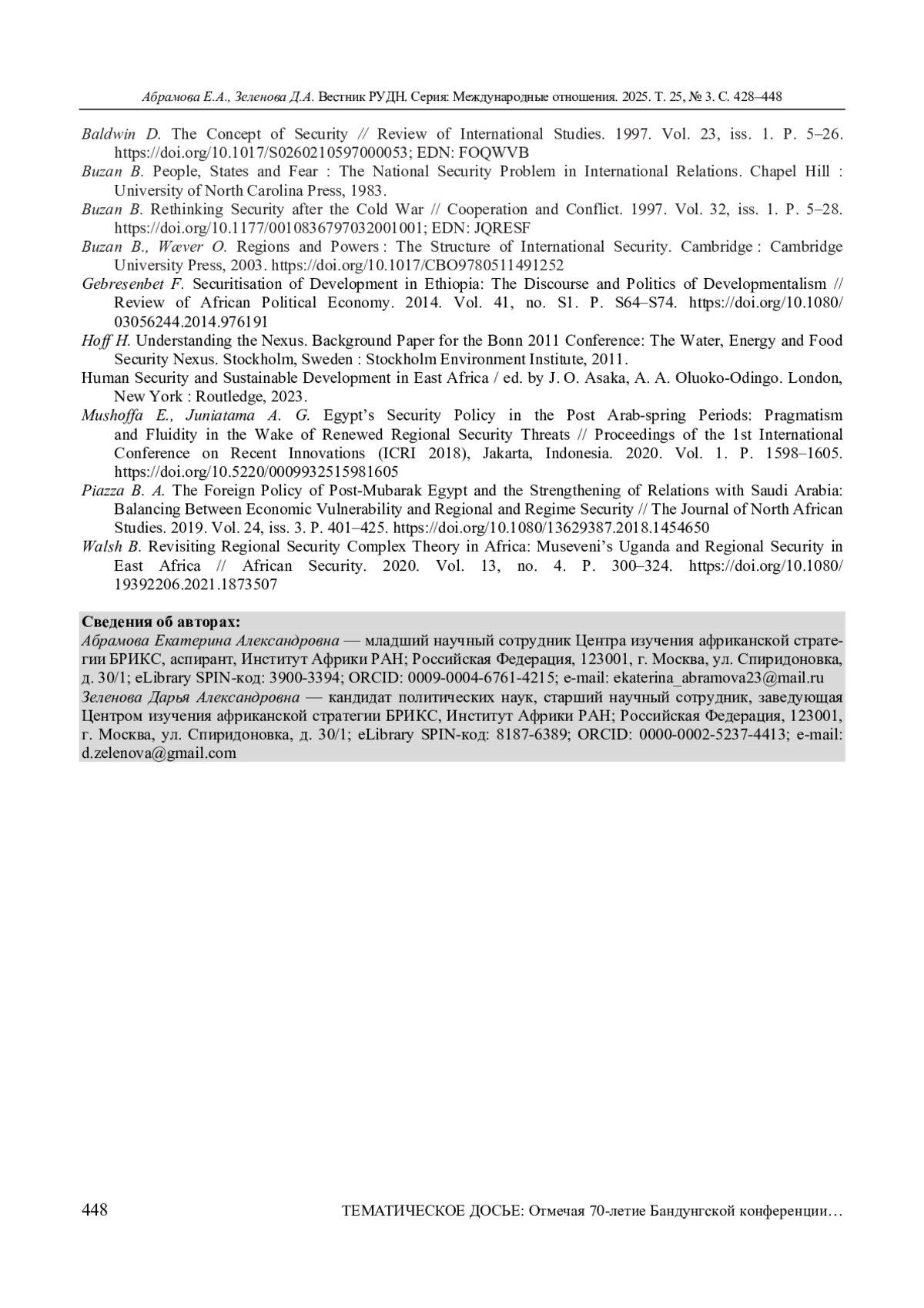 2. Бартенев В. И. Связка “безопасность - развитие” в современных западных исследованиях: от деконструкции к концептуализации // Международные процессы. 2015. Т. 13, № 3. С. 78-97. EDN: UXZTYX