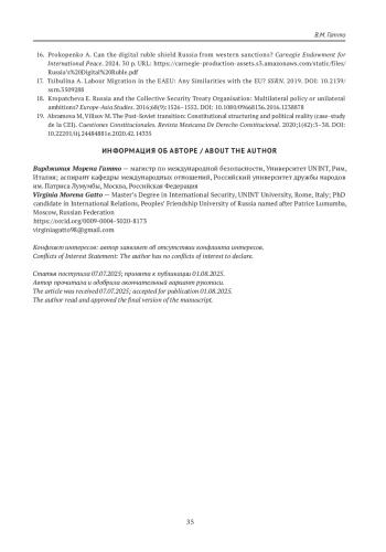 13. Libman A. Chapter 16: EAEU and economic sanctions. In: The Elgar Companion to the Eurasian Economic Union. Cheltenham, UK: Edward Elgar Publishing; 2024. https://doi.org/10.4337/9781800375000.00027