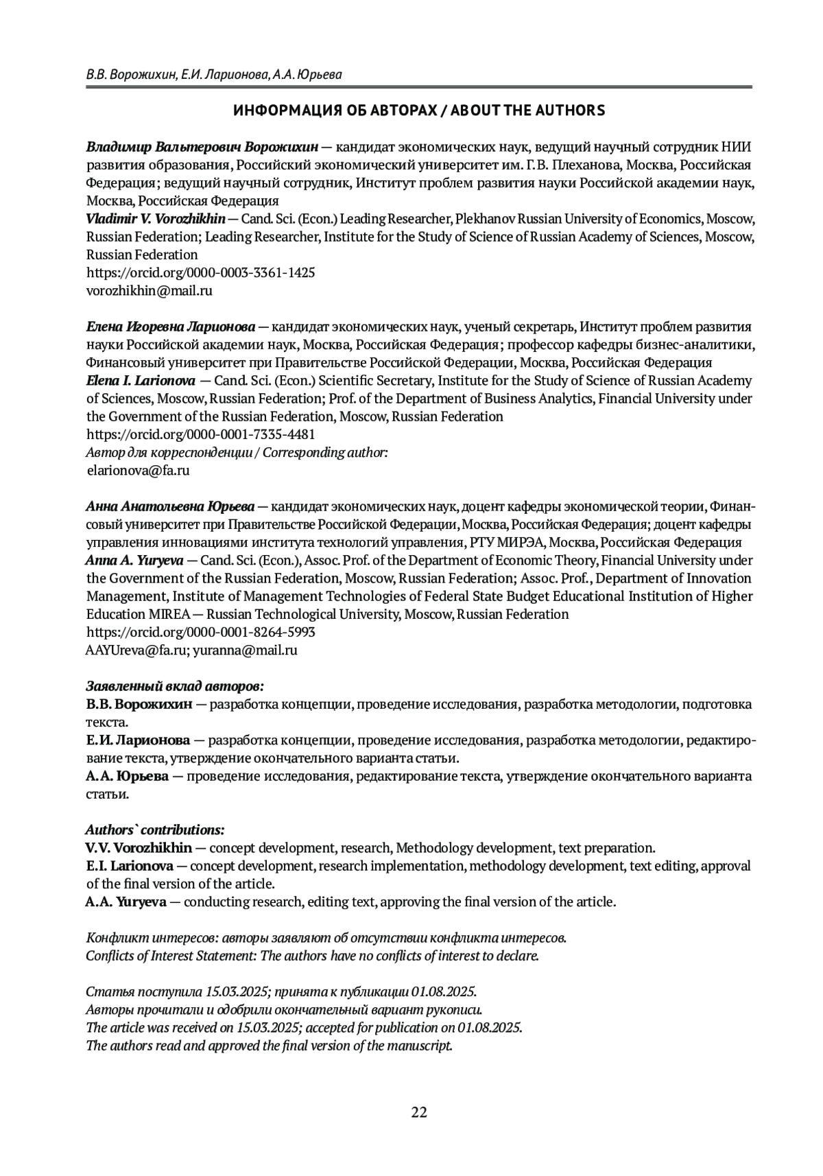 16. Ворожихин В. В. Мультисети: организационное решение увеличения числа исследователей и повышения конкурентоспособности российской науки. В сб.: Наука в инновационном процессе. Материалы международной научно-практической конференции. Москва; 2021:146-152. URL: https://www.issras.ru/scicoop/docs/public01122021.pdf https://doi.org/10.37437/9785912941719-21-ss2