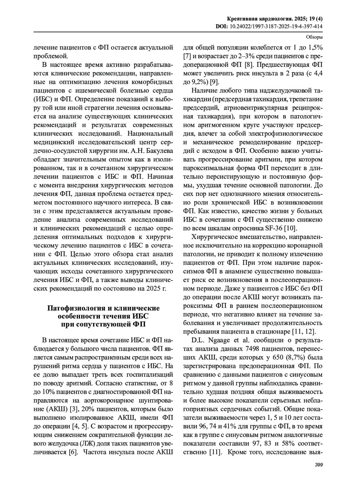 22. Malaisrie S.C., McCarthy P.M., Kruse J., Matsouaka R.A., Churyla A., Grau-Sepulveda M.V. et al. Ablation of atrial fibrillation during coronary artery bypass grafting: late outcomes in a medicare population. J. Thorac. Cardiovasc. Surg. 2021; 161 (4): 1251-1261.e1. DOI: 10.1016/j.jtcvs.2019.10.159