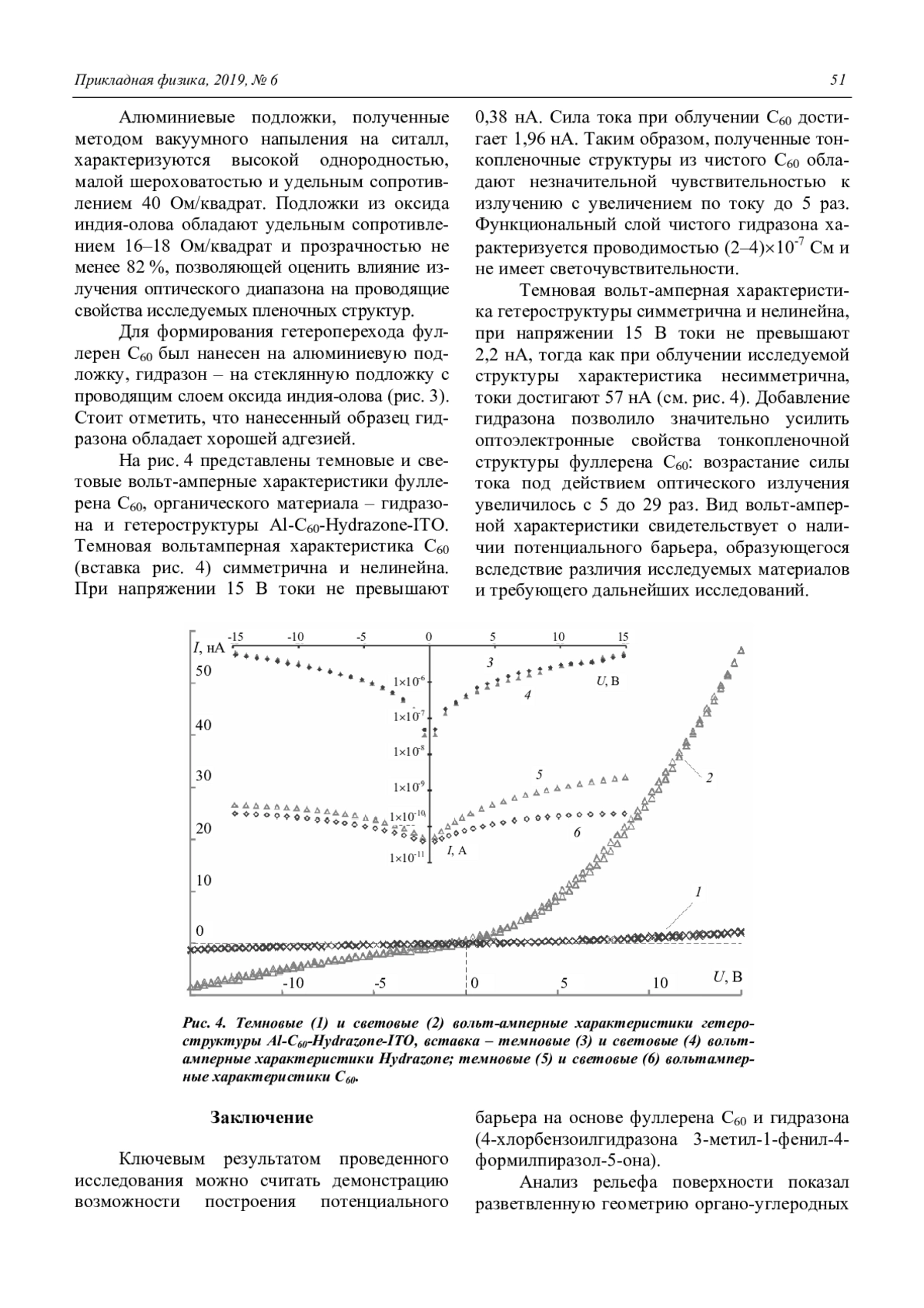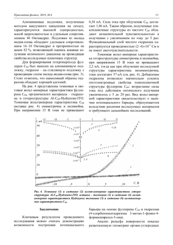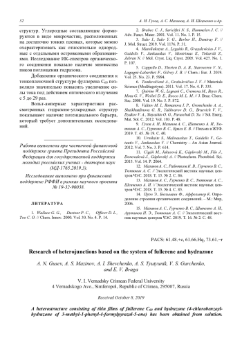 Гусев А. Н., Мазинов А. С., Шевченко А. И., Тютюник А. С., Гурченко В. С., Брага Е. В. Исследование гетеропереходов на основе системы фуллерена и гидразона 48