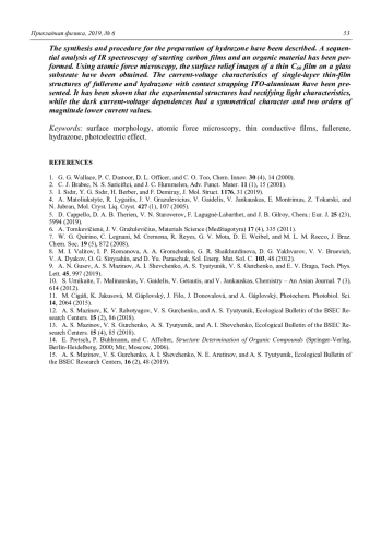 A. N. Gusev, A. S. Mazinov, A. I. Shevchenko, A. S. Tyutyunik, V. S. Gurchenko, and E. V. Braga Research of heterojunctions based on the system of fullerene and hydrazone 48