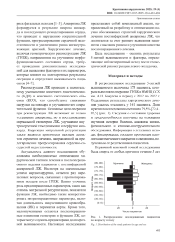 Цель исследования – оценить результаты 5-летней выживаемости и факторы, определяющие неблагоприятный исход после геометрической реконструкции левого желудочка (ГРЛЖ).