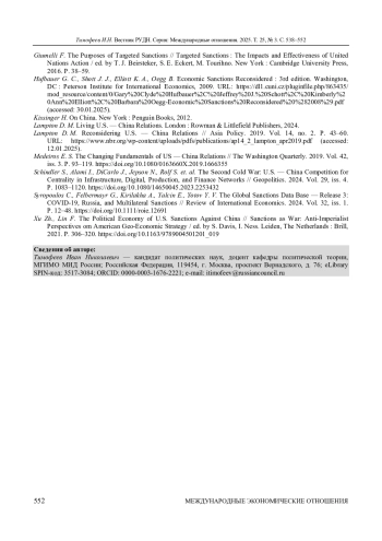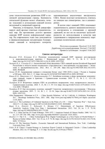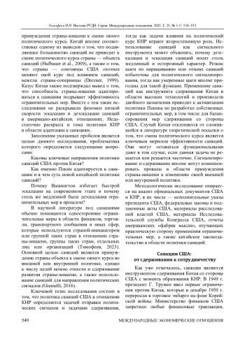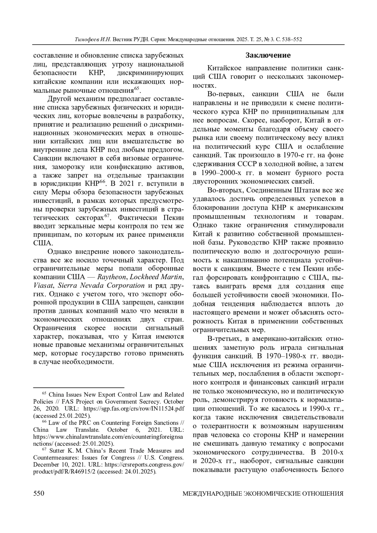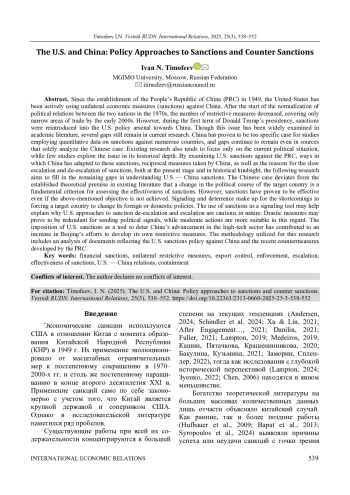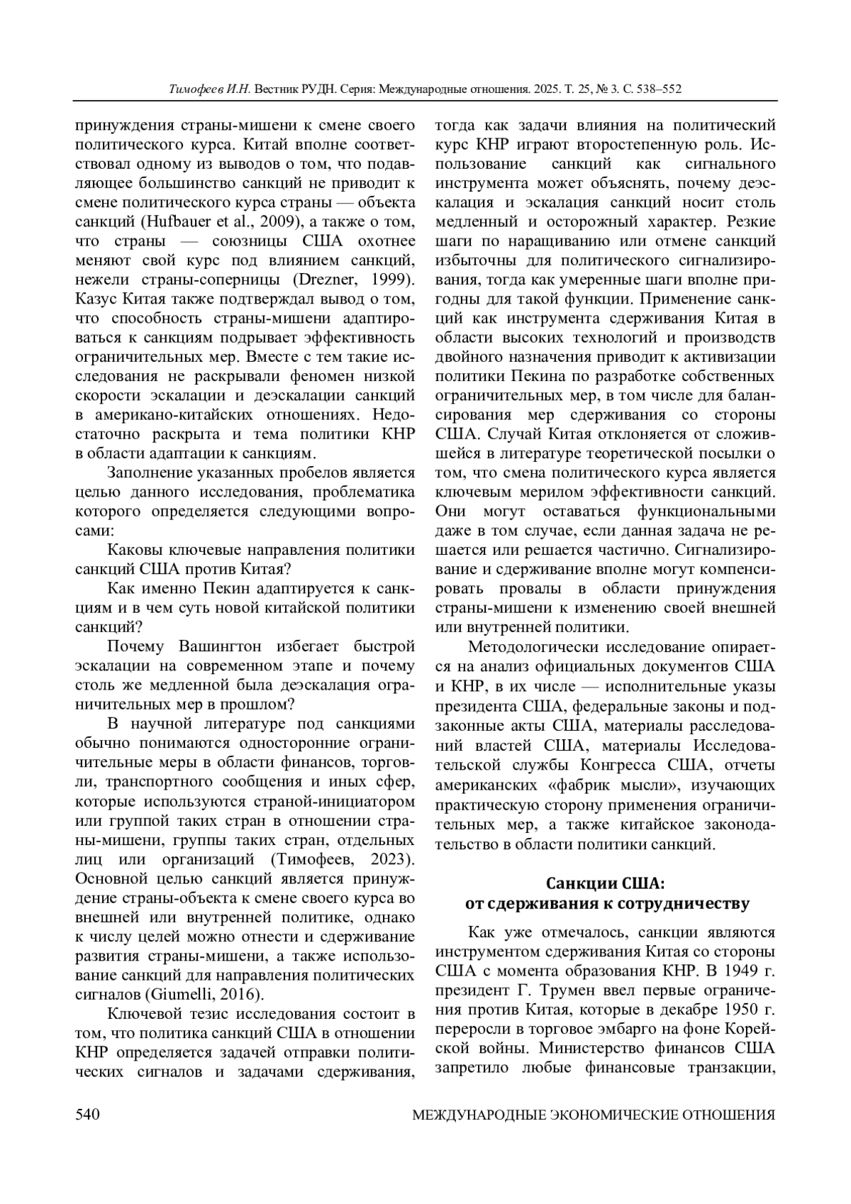 ТИМОФЕЕВ И. Н. США - КНР: ПОЛИТИКА САНКЦИЙ И КОНТРСАНКЦИЙ // ВЕСТНИК РОССИЙСКОГО УНИВЕРСИТЕТА ДРУЖБЫ НАРОДОВ. СЕРИЯ: МЕЖДУНАРОДНЫЕ ОТНОШЕНИЯ. 2025. ТОМ 25 № 3