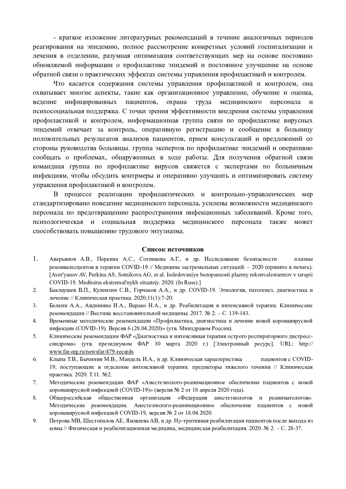 7. Методические рекомендации ФАР “Анестезиолого-реанимационное обеспечение пациентов с новой коронавирусной инфекцией (COVID-19)” (версия № 2 от 18 апреля 2020 года).