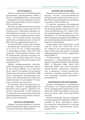 Цель исследования. Оценить распространённость артериальной гипертонии среди взрослого населения Республики Таджикистан.