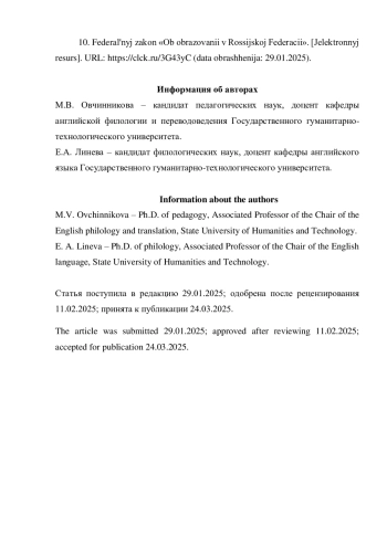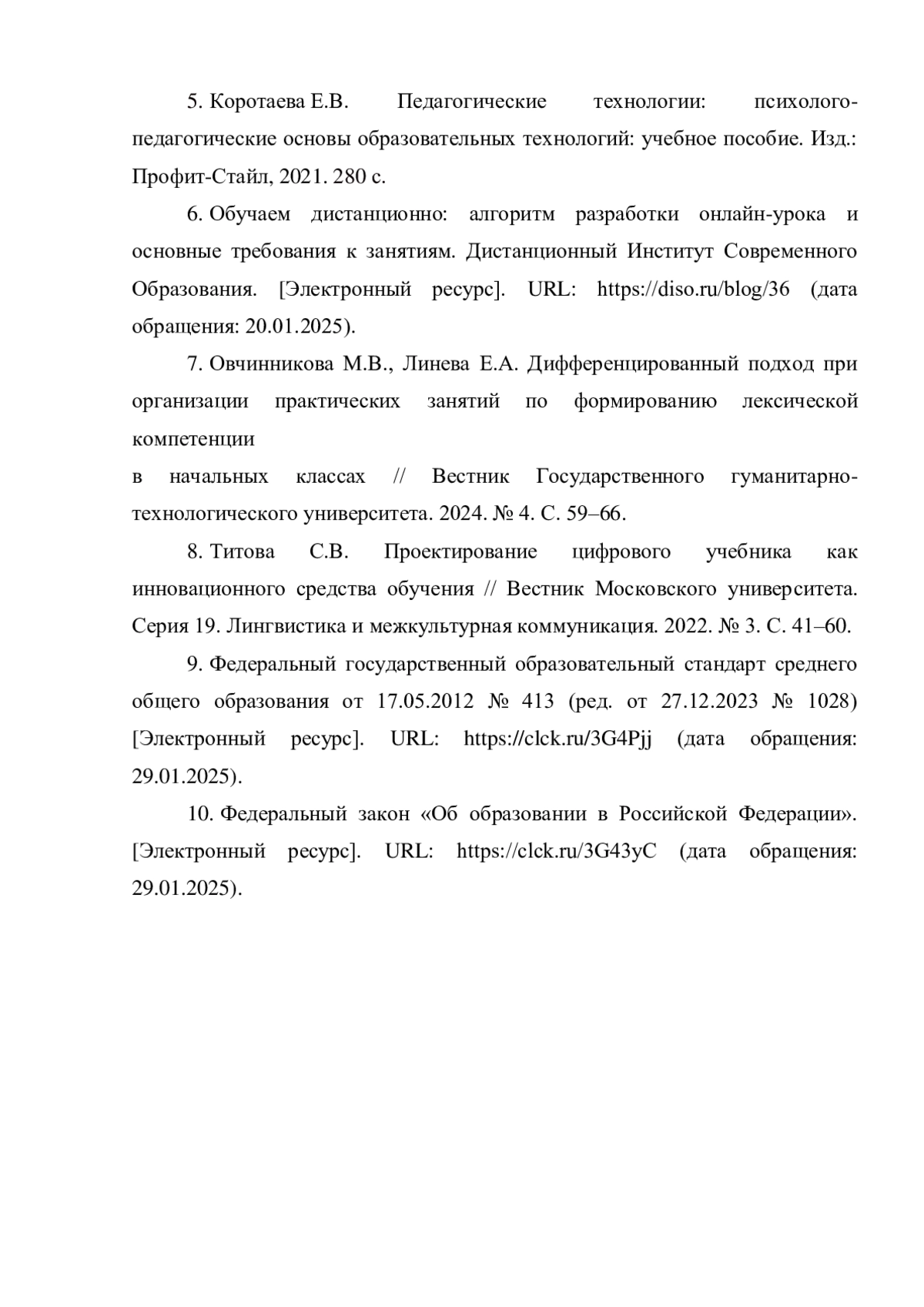 10. Федеральный закон “Об образовании в Российской Федерации”. [Электронный ресурс]. URL: https://clck.ru/3G43yC (дата обращения: 29.01.2025).