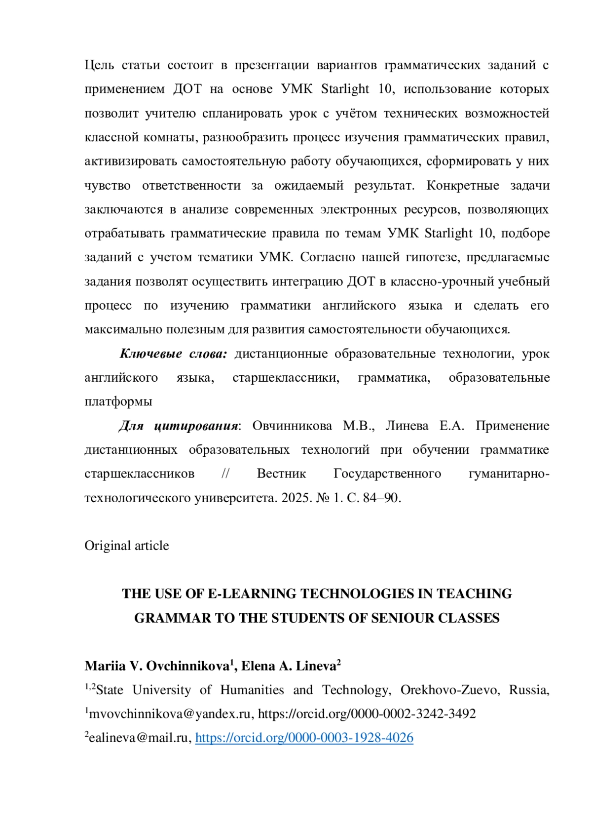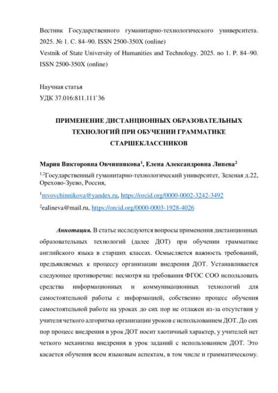 7. Овчинникова М.В., Линева Е.А. Дифференцированный подход при организации практических занятий по формированию лексической компетенции в начальных классах // Вестник Государственного гуманитарно-технологического университета. 2024. № 4. С. 59-66. EDN: FTIALZ