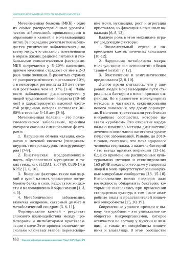 32. Galán-Llopis J., Sánchez-Pellicer P., Navarro-López V. Role of microbiome in kidney stone disease. Curr Opin Urol. 2022; 33: 84-89. DOI: 10.1097/MOU.0000000000001051