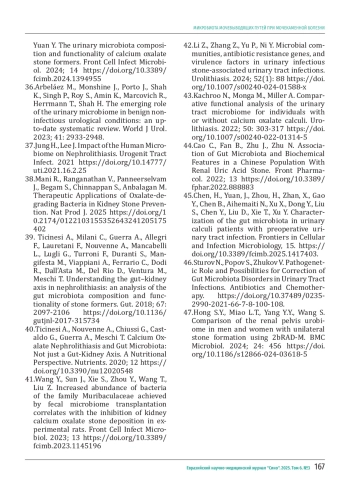 43. Kachroo N., Monga M., Miller A. Comparative functional analysis of the urinary tract microbiome for individuals with or without calcium oxalate calculi. Urolithiasis. 2022; 50: 303-317. DOI: 10.1007/s00240-022-01314-5