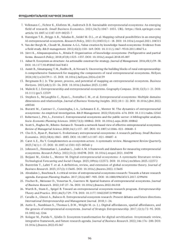 6. Bouncken R.B., Kraus S. Entrepreneurial ecosystems in an interconnected world: Emergence, governance and digitalization. Review of Managerial Science. 2022;16(1):1-14. https://doi.org/10.1007/s11846-021-00444-1