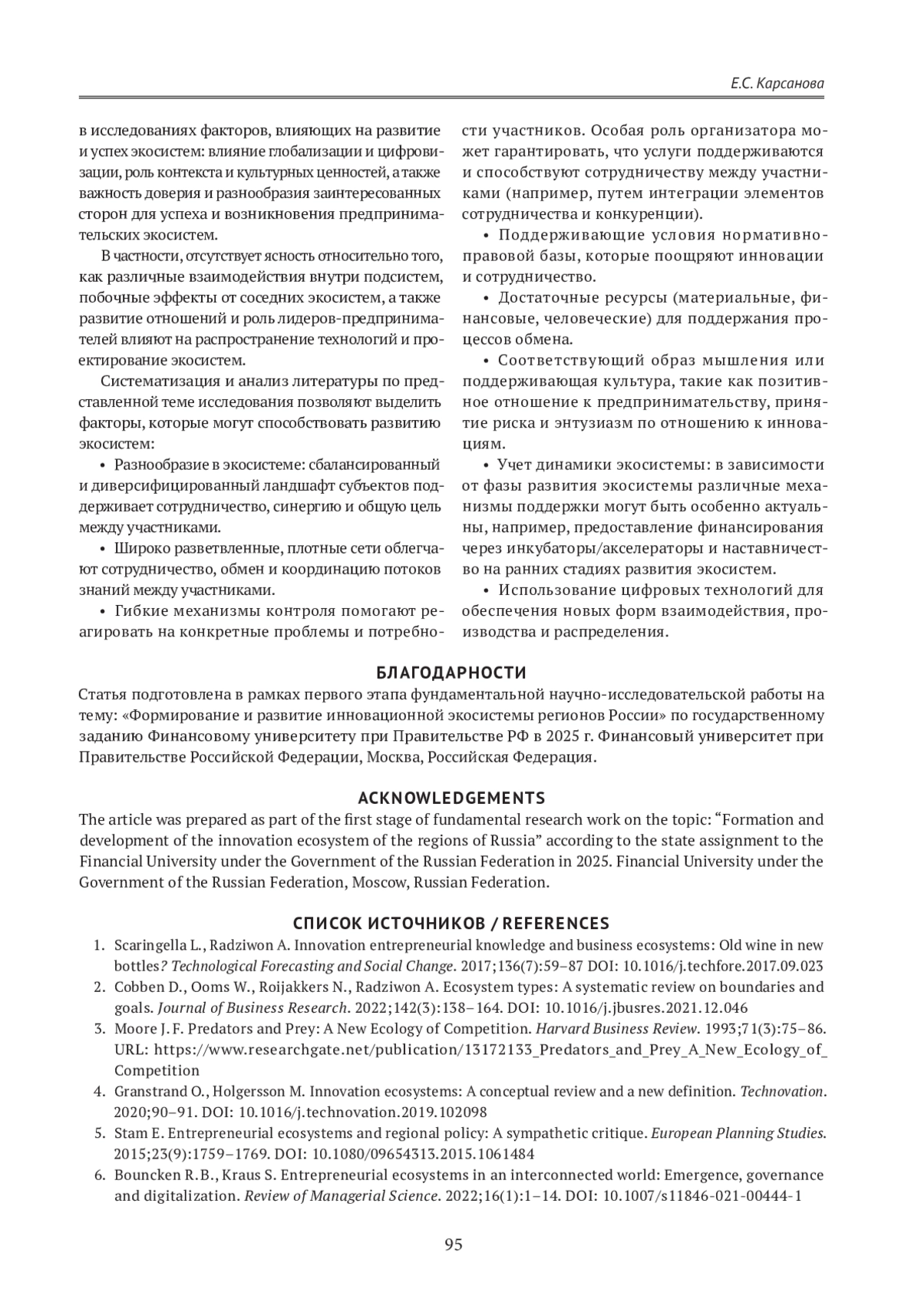 1. Scaringella L., Radziwon A. Innovation entrepreneurial knowledge and business ecosystems: Old wine in new bottles? Technological Forecasting and Social Change. 2017;136(7):59-87 https://doi.org/10.1016/j.techfore.2017.09.023