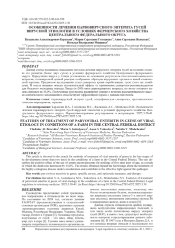 11. Контримавичус Л.М., Величко Г.Н. Профилактические мероприятия и методы диагностики вирусного энтерита гусей. Ветеринария.2019;3:27-30.