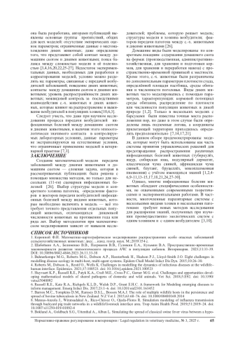 1. Коренной Ф.И. Математико-картографическое моделирование распространения особо опасных заболеваний сельскохозяйственных животных: дисс..канд. геогр. наук. М.;2019:154 с.