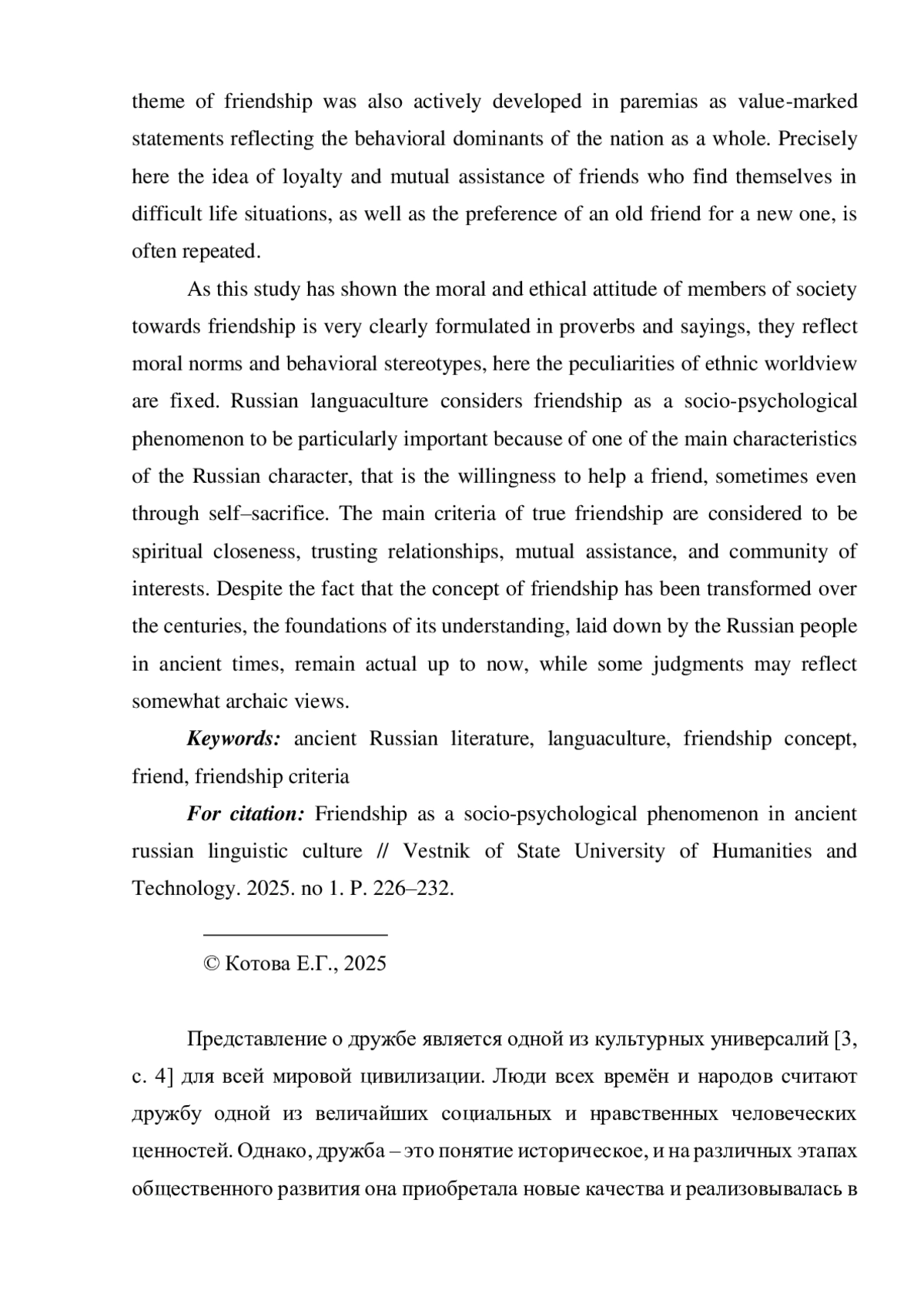 3. Ару А. Языковая репрезентация концепта “дружба” в русской речи. дис. … канд. филол. наук. Нижний Новгород, 2022. 213 с. EDN: KOJAZW
