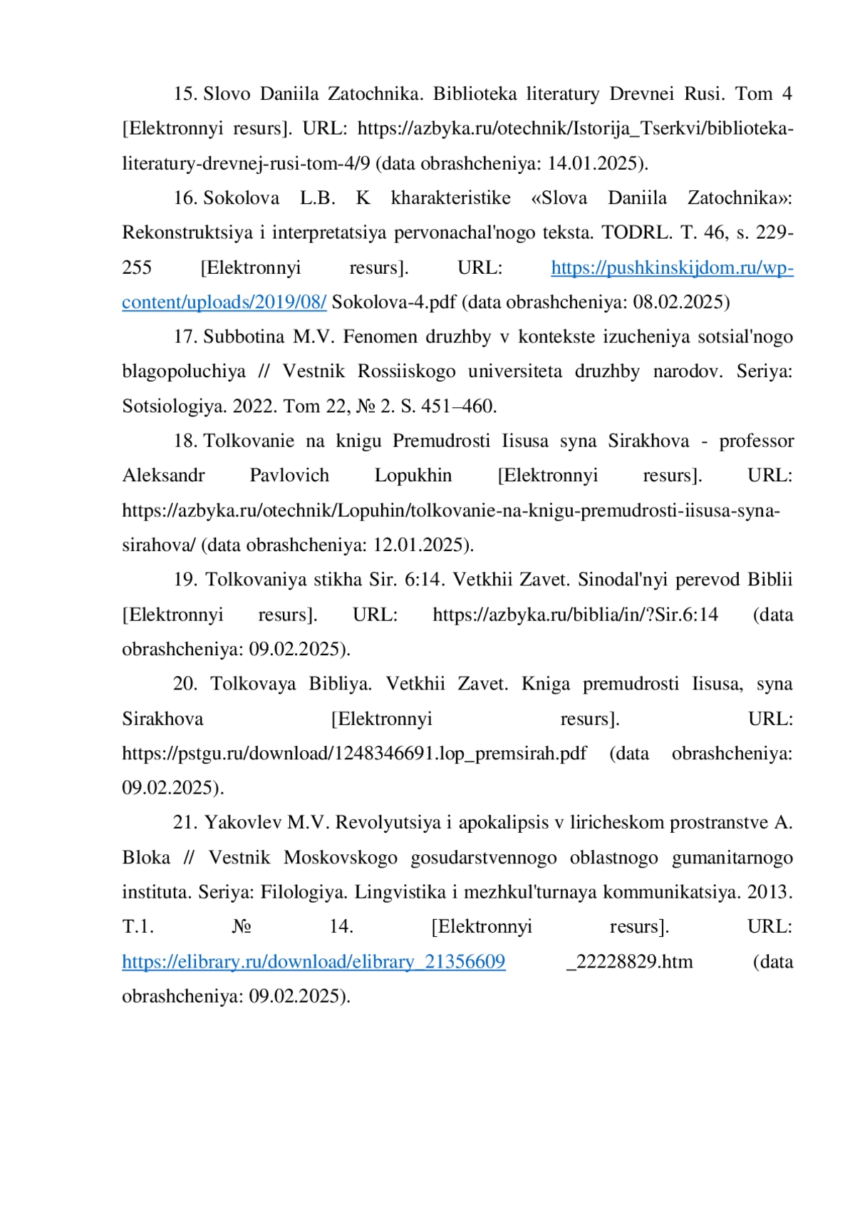 16. Соколова Л.Β. Κ характеристике “Слова Даниила Заточника”: Реконструкция и интерпретация первоначального текста. ТОДРЛ. Т. 46. С. 229-255 [Электронный ресурс]. URL: https://pushkinskijdom.ru/wp-content/uploads/2019 /08/Sokolova-4.pdf (дата обращения: 08.02.2025).