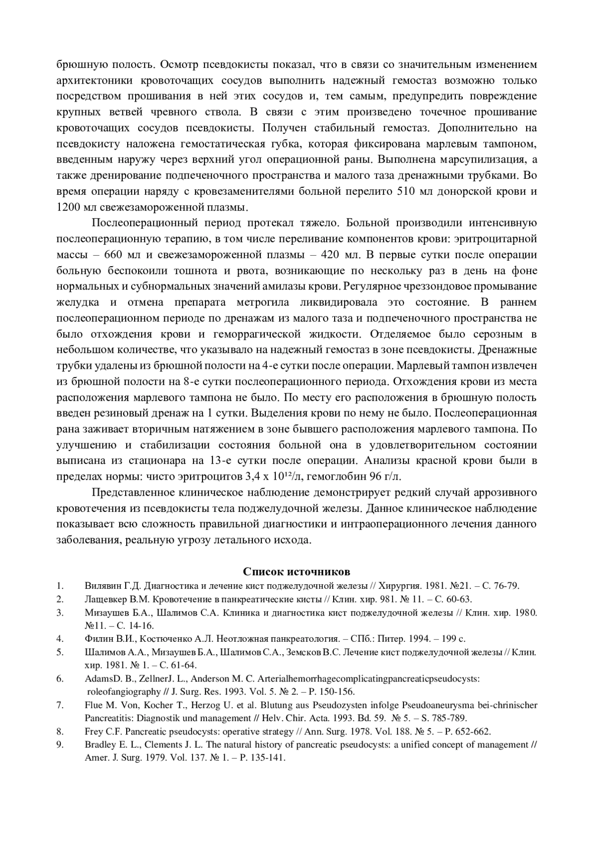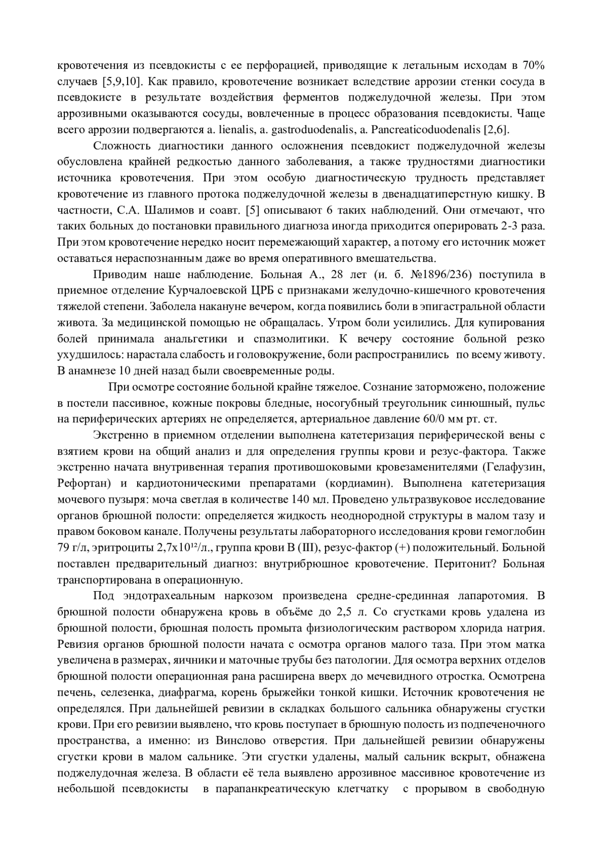Ключевые фразы: киста поджелудочной железы, аррозивное кровотечение, a lienalis, a gastroduodenalis, a pancreaticoduodenalis
