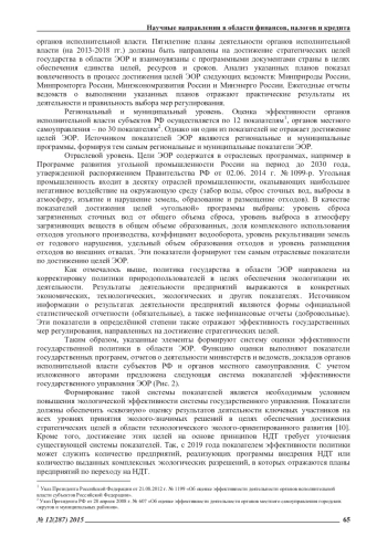 Рассмотрен текущий этап государственной экологической политики, характеризующийся переходом к концепции технологического регулирования. Сформирован «пакет» государственных стратегических целей c целевыми количественными показателями в области экологического развития. Изучены отдельные элементы системы государственного управления экологоориентированным технологическим развитием, отражающие ее эффективность. Предложен методический подход к проведению оценки эффективности государственного управления на основе мониторинга достижения стратегических целей