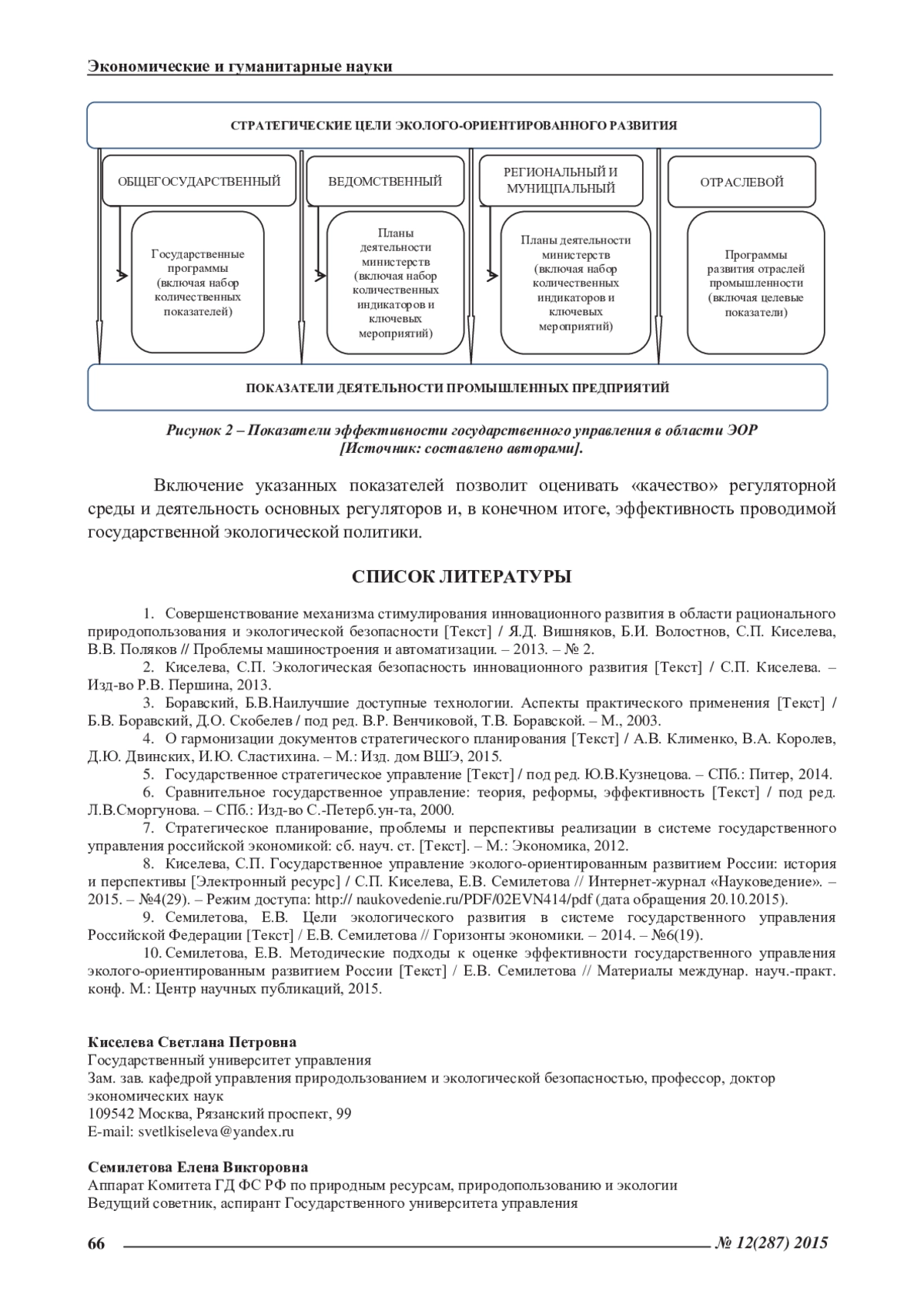 8. Киселева, С.П. Государственное управление эколого-ориентированным развитием России: история и перспективы /С.П. Киселева, Е.В. Семилетова//Интернет-журнал «Науковедение». -2015. -№4(29). -Режим доступа: http://naukovedenie.ru/PDF/02EVN414/pdf (дата обращения 20.10.2015).