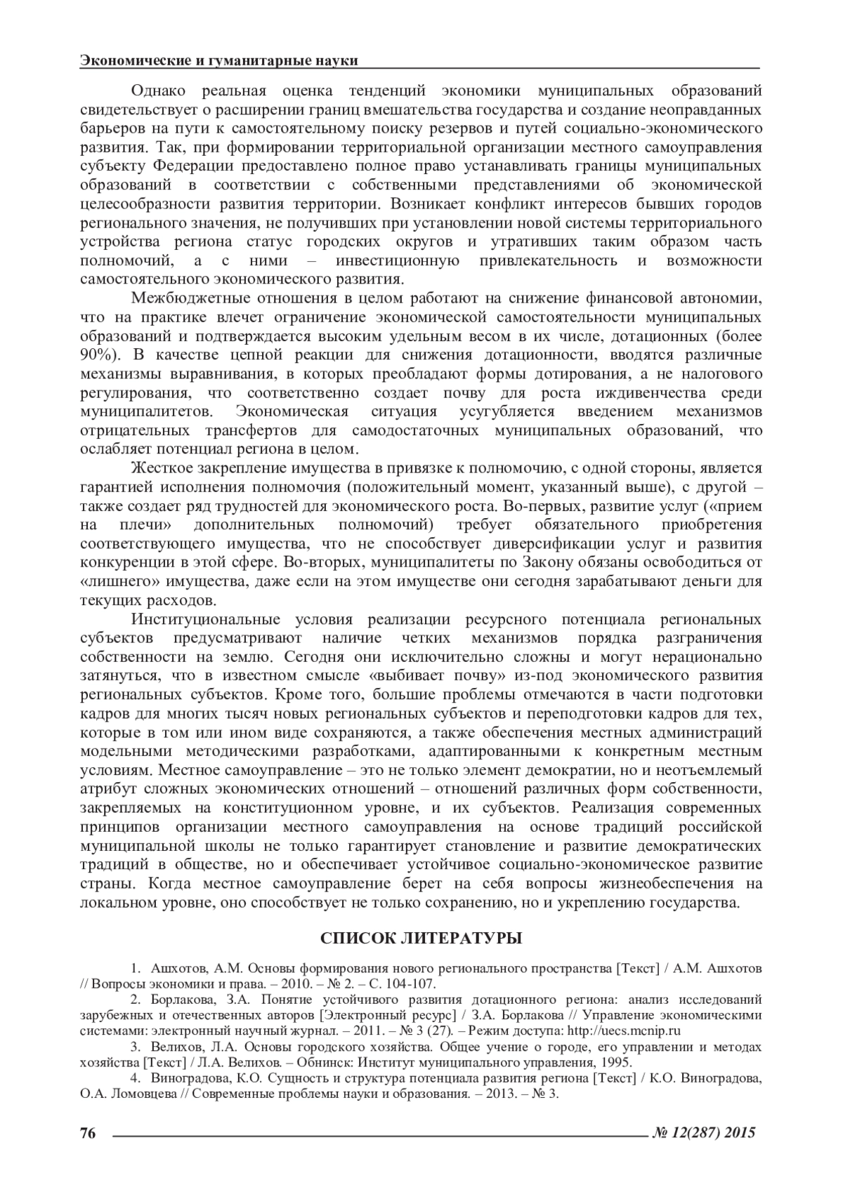 2. Борлакова, З.А. Понятие устойчивого развития дотационного региона: анализ исследований зарубежных и отечественных авторов [Электронный ресурс] / З.А. Борлакова // Управление экономическими системами: электронный научный журнал. - 2011. - № 3 (27). - Режим доступа: http://uecs.mcnip.ru.