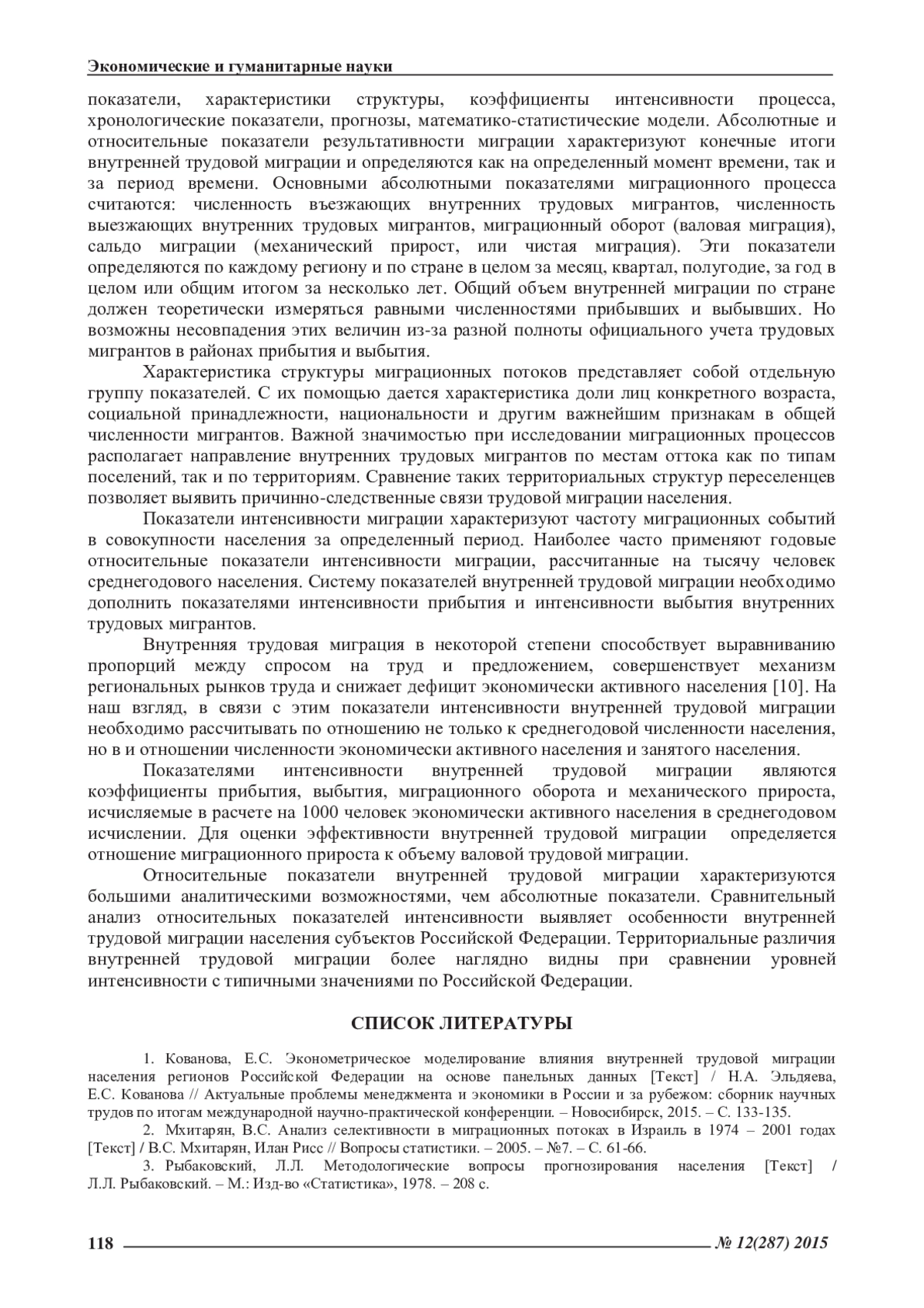 1. Кованова, Е.С. Эконометрическое моделирование влияния внутренней трудовой миграции населения регионов Российской Федерации на основе панельных данных [Текст] / Н.А. Эльдяева, Е.С. Кованова // Актуальные проблемы менеджмента и экономики в России и за рубежом: сборник научных трудов по итогам международной научно-практической конференции. - Новосибирск, 2015. - С. 133-135. EDN: TNQZJH