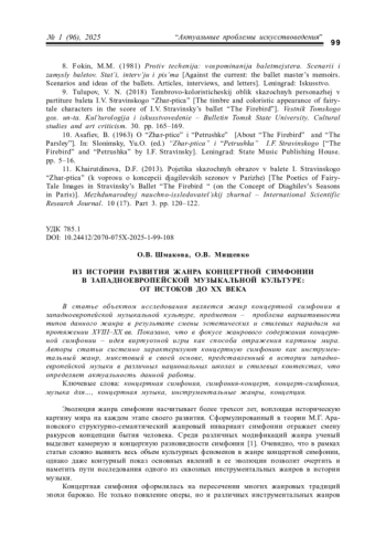 Статья: ИЗ ИСТОРИИ РАЗВИТИЯ ЖАНРА КОНЦЕРТНОЙ СИМФОНИИ В ЗАПАДНОЕВРОПЕЙСКОЙ МУЗЫКАЛЬНОЙ КУЛЬТУРЕ: ОТ ИСТОКОВ ДО ХХ ВЕКА (2025)
