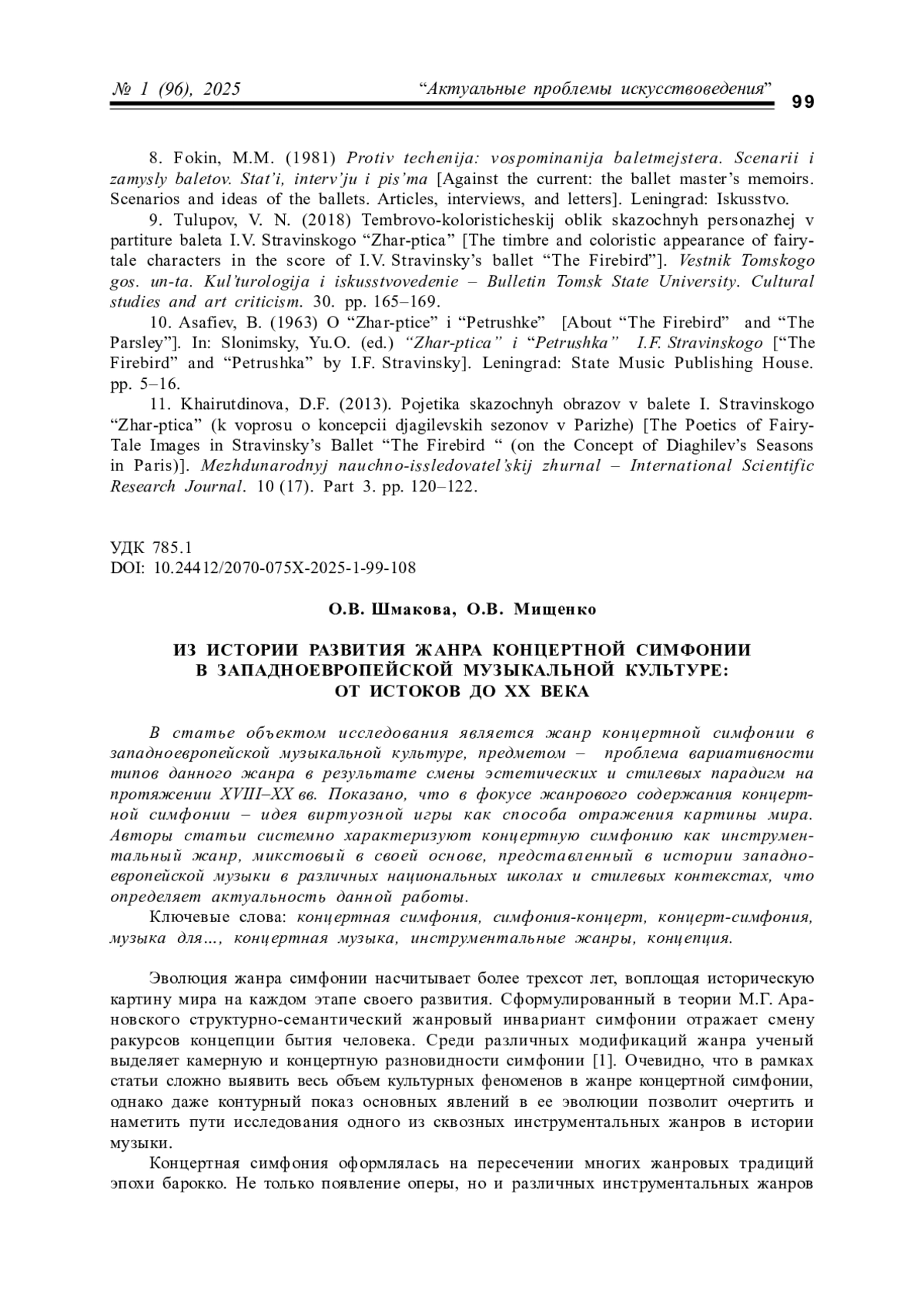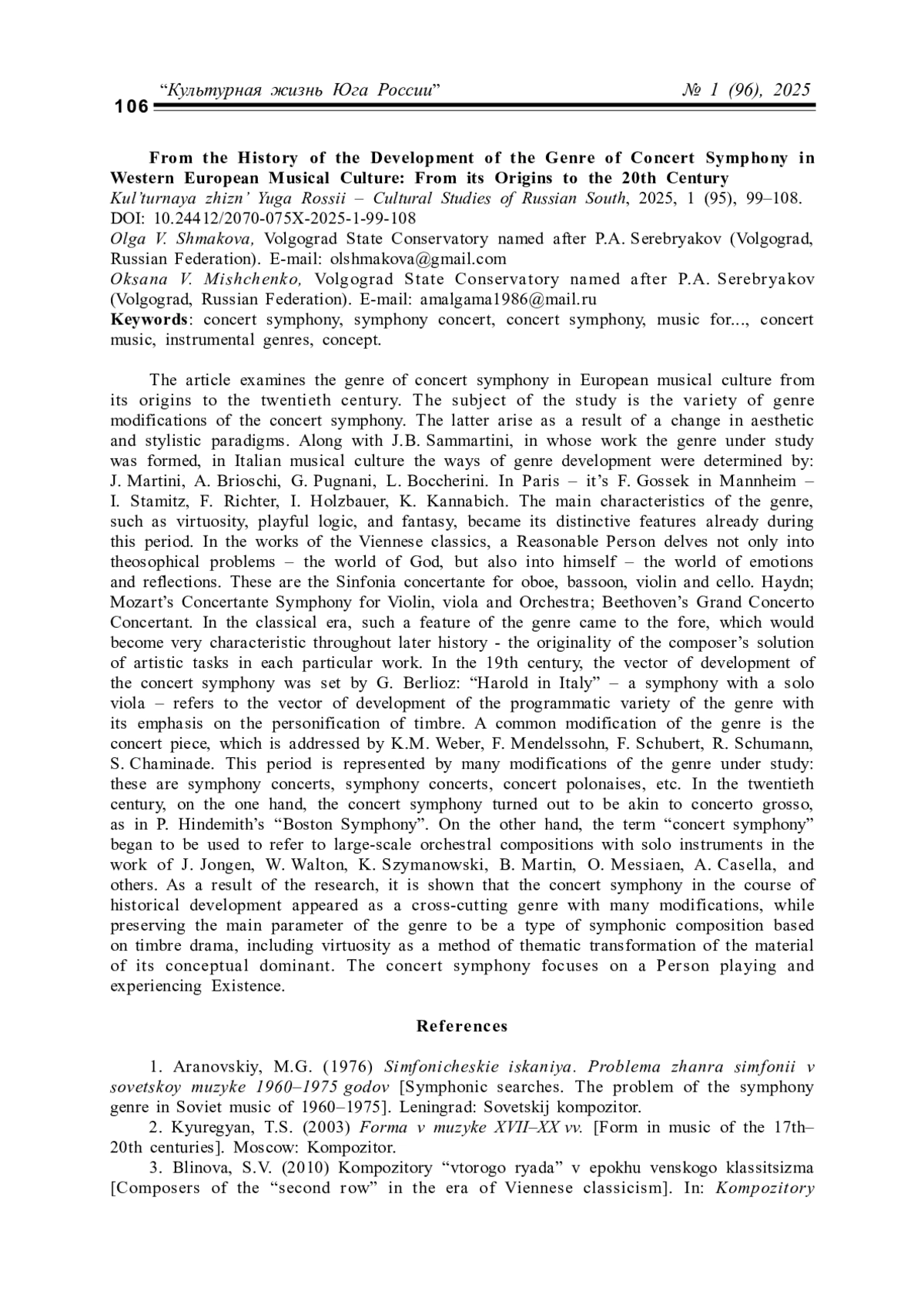 ШМАКОВА О. В., МИЩЕНКО О. В. ИЗ ИСТОРИИ РАЗВИТИЯ ЖАНРА КОНЦЕРТНОЙ СИМФОНИИ В ЗАПАДНОЕВРОПЕЙСКОЙ МУЗЫКАЛЬНОЙ КУЛЬТУРЕ: ОТ ИСТОКОВ ДО ХХ ВЕКА // КУЛЬТУРНАЯ ЖИЗНЬ ЮГА РОССИИ. 2025. № 1 (96)