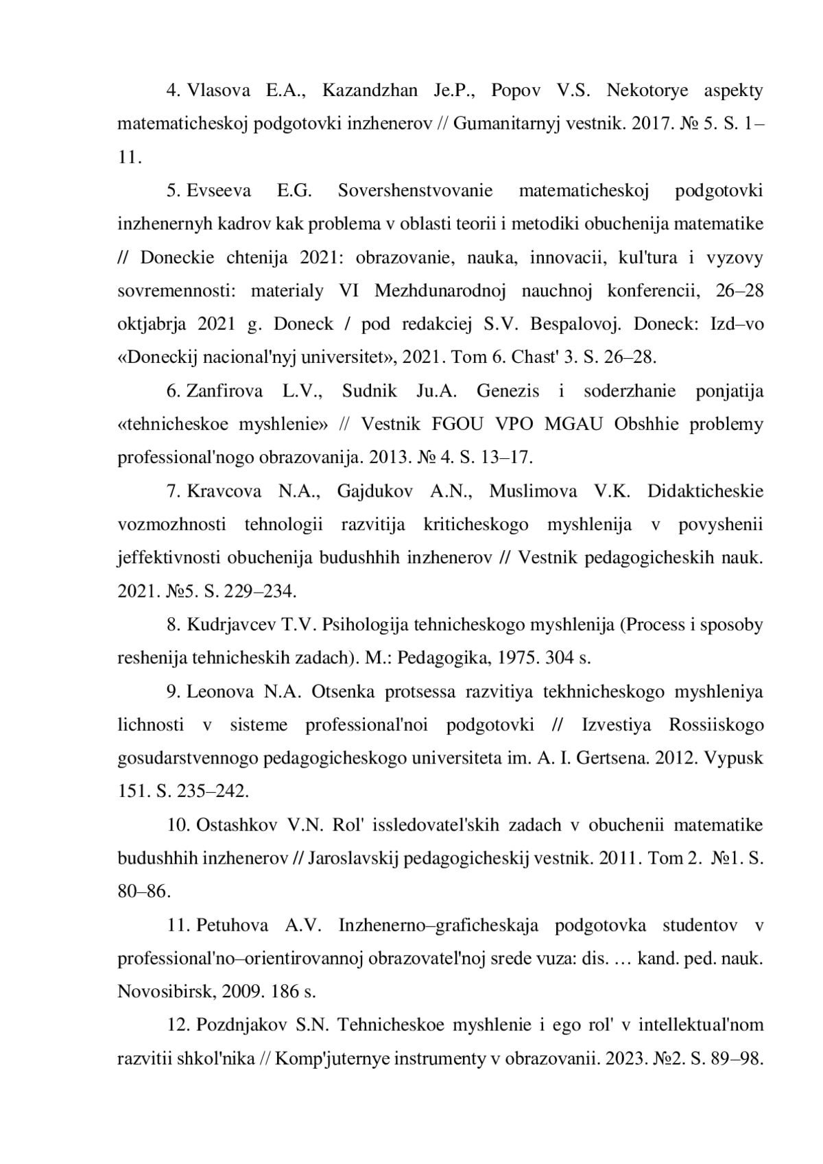 9. Леонова Н.А. Оценка процесса развития технического мышления личности в системе профессиональной подготовки // Известия Российского государственного педагогического университета им. А.И. Герцена. 2012. Выпуск 151. С. 235-242. EDN: PIFMYP