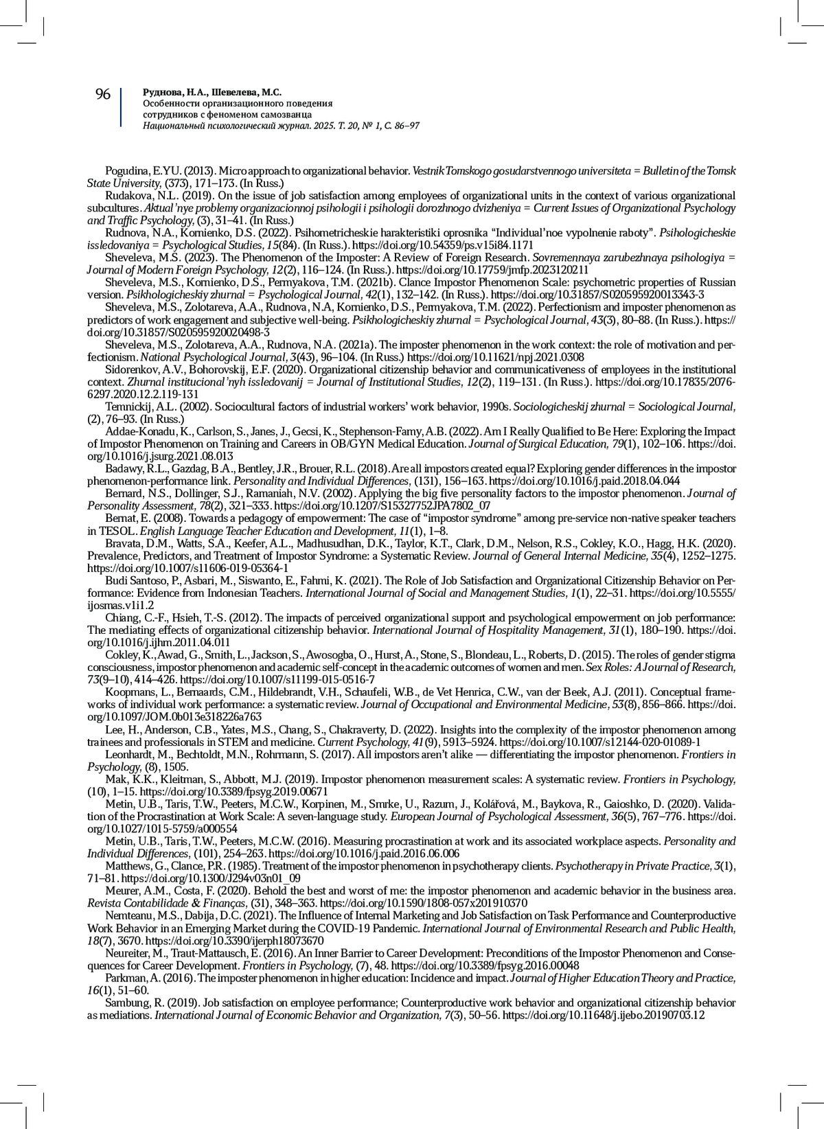 12. Шевелева, М.С. (2023). Феномен самозванца: обзор зарубежных исследований. Современная зарубежная психология, 12(2), 116-124. DOI: 10.17759/jmfp.2023120211