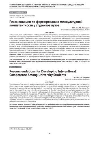 Статья: Рекомендации по формированию межкультурной компетентности у студентов вузов (2024)