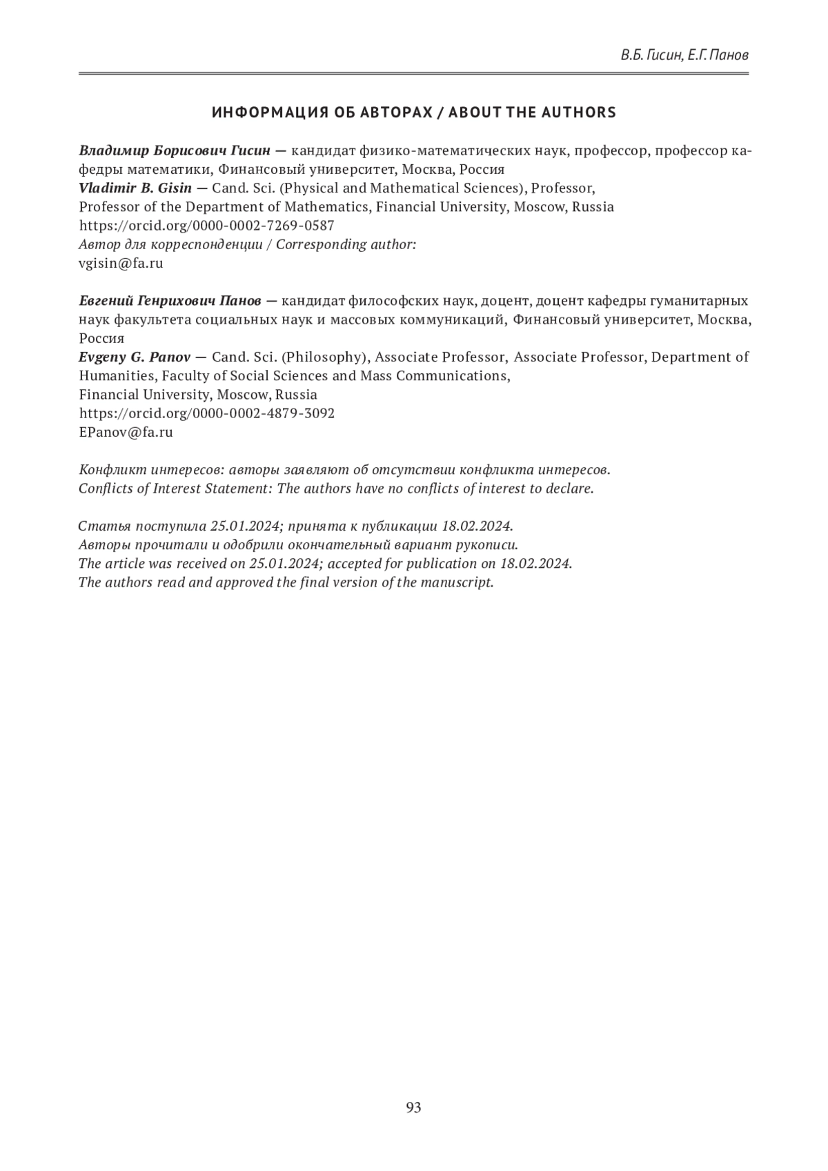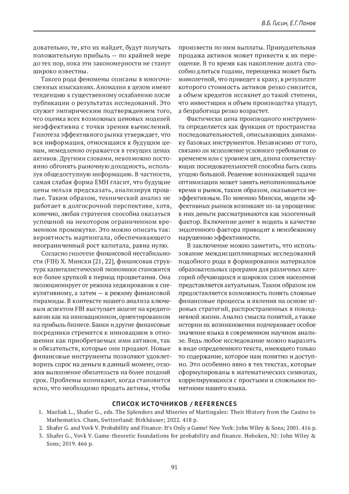 2. Shafer G. and Vovk V. Probability and Finance: It’s Only a Game! New York: John Wiley & Sons; 2001. 416 p.
