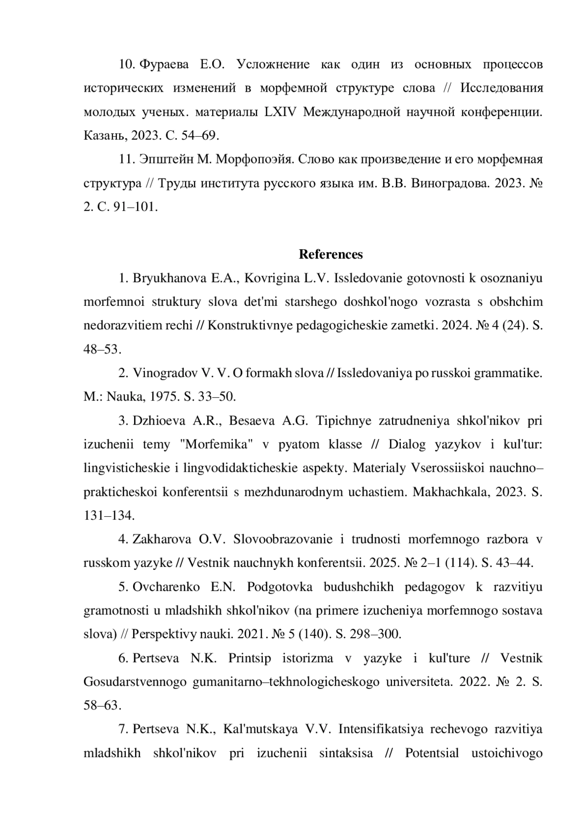 4. Захарова О.В. Словообразование и трудности морфемного разбора в русском языке // Вестник научных конференций. 2025. № 2-1 (114). С. 43-44. EDN: EHQZWM