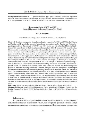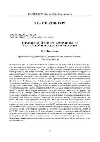 ГЕРМЕНЕВТИЧЕСКИЙ КРУГ: ЛУНА И СОЛНЦЕ В КИТАЙСКОЙ И РУССКОЙ КАРТИНАХ МИРА