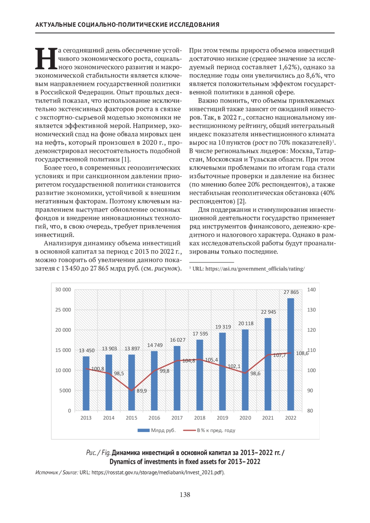Более того, в современных геополитических условиях и при санкционном давлении приоритетом государственной политики становится развитие экономики, устойчивой к внешним негативным факторам. Поэтому ключевым направлением выступает обновление основных фондов и внедрение инновационных технологий, что, в свою очередь, требует привлечения инвестиций.
