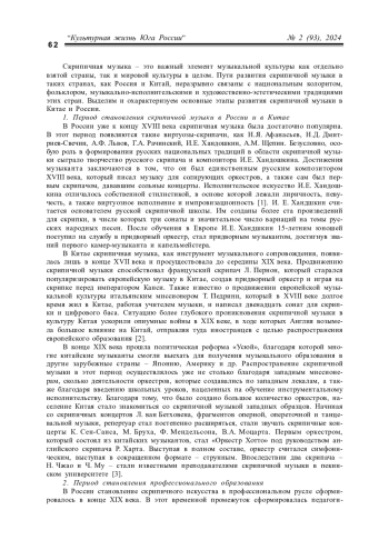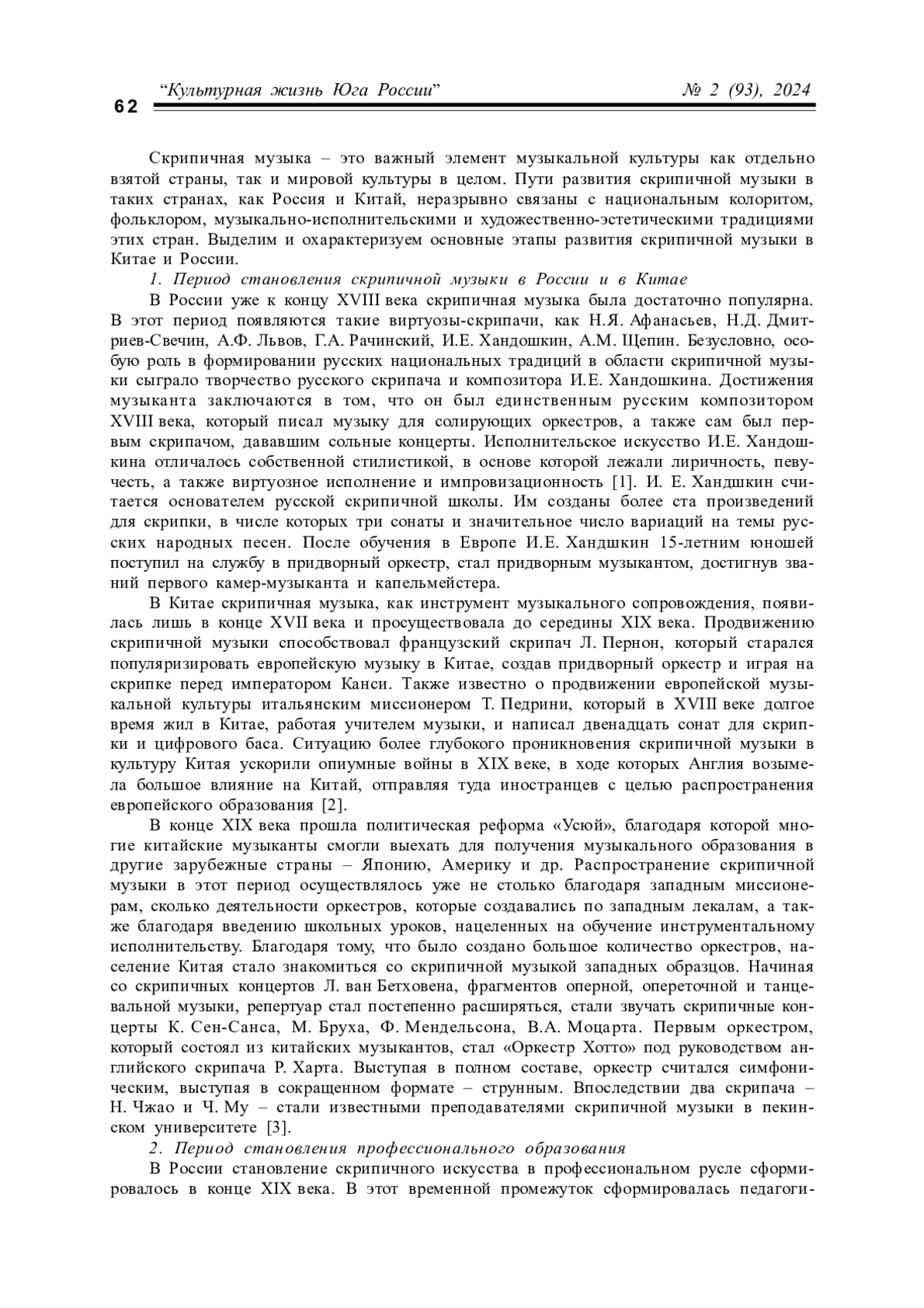 9. Чжан Хуэйминь. Исследование национализации китайского скрипичного искусства // Вестник Педагогического института Цилу. 2019. № 3. С. 55-62. (На кит. яз.).