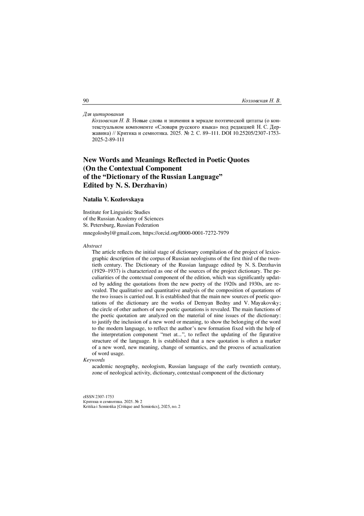 Интерес к контекстуальному компоненту словаря связан с началом ра-боты над словарным описанием корпуса русских неологизмов 1900– 1930-х гг. – периода, не отраженного в академической толковой лексико-графии. Одним из источников проекта является «Словарь русского языка» под редакцией Н. С. Державина (далее – СРЯД), представленный в 23-х выпусках, вышедших с 1929 по 1937 г., – издание Словаря Грота – Шахматова, «которое с 1932 года, после нескольких лет поиска, получило название “седьмого”» [Истратий, 2022, с. 75].