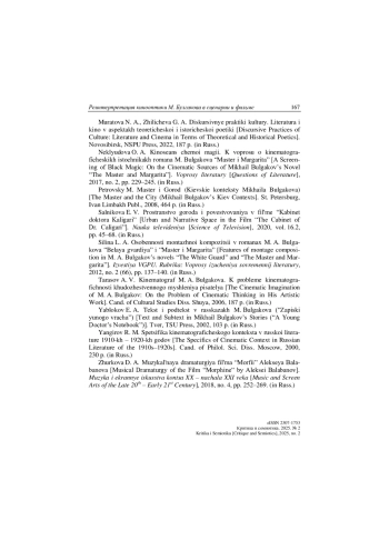8. Тарасов А. В. Кинематограф М. А. Булгакова. К проблеме кинематографичности художественного мышления писателя: Дис. … канд. культурологии. Шуя, 2006. 187 с.