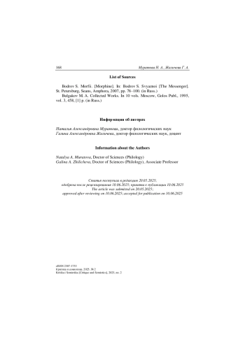 1. Журкова Д. А. Музыкальная драматургия фильма “Морфий” Алексея Балабанова // Музыка и экранные искусства конца ХХ - начала ХХI века. 2018. № 4. С. 252-269.